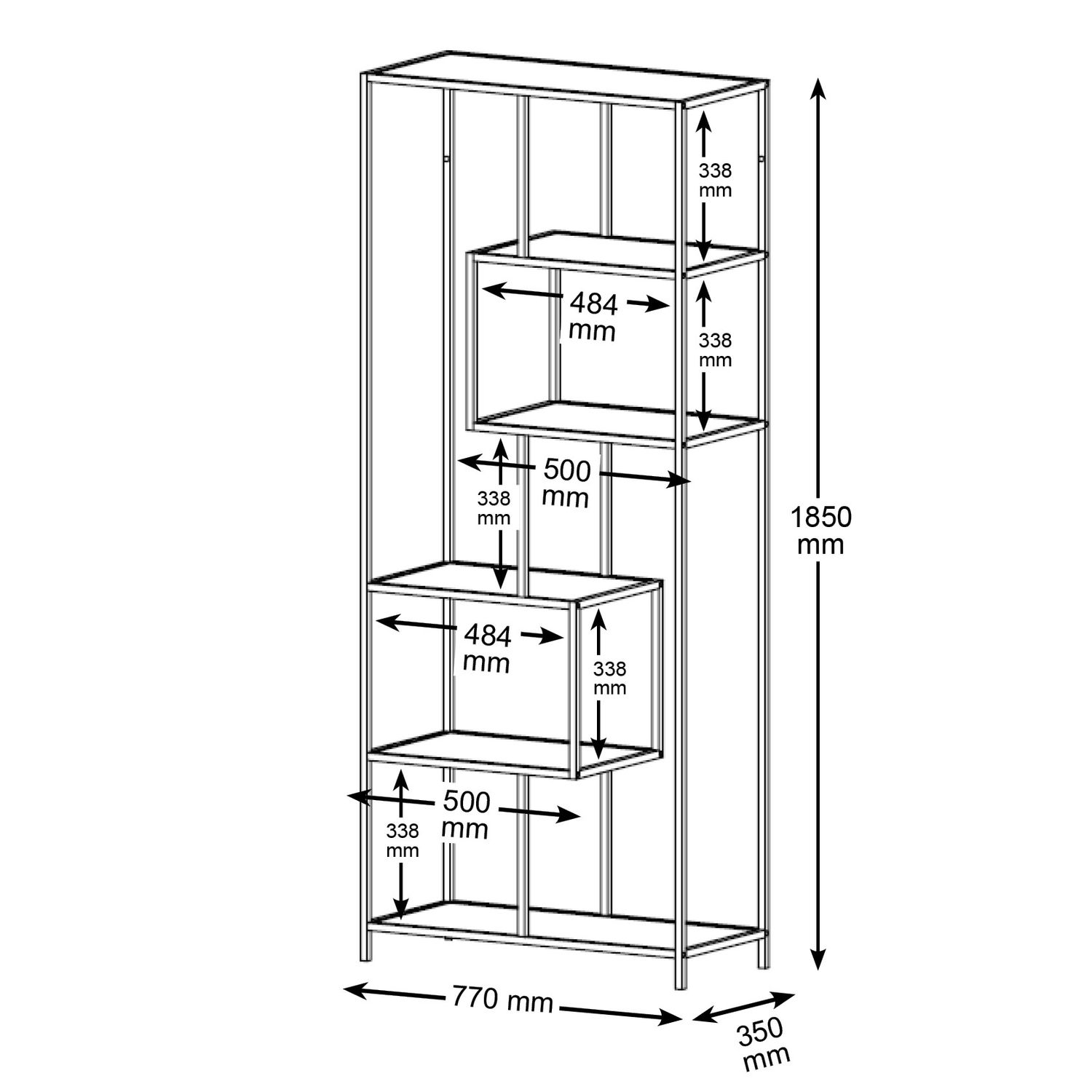 - Espace entre les étagères : Hauteur 33,80 cm.
