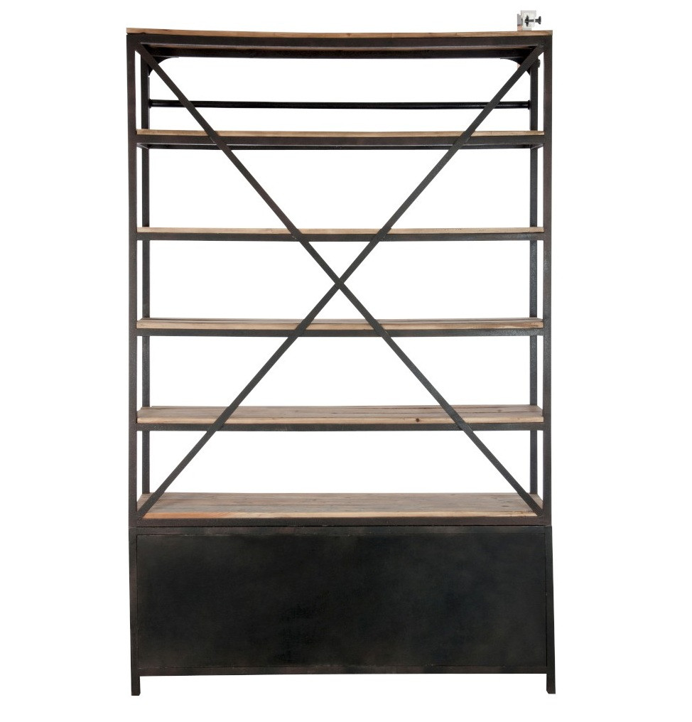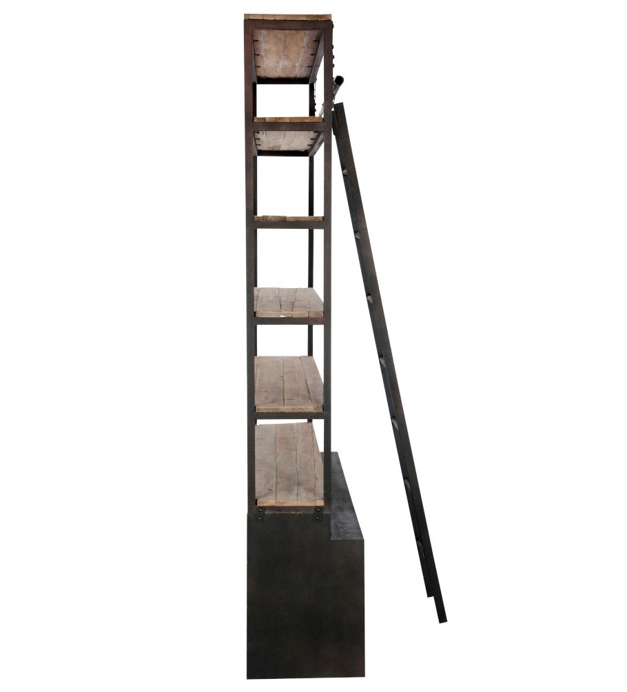 Libellé Bibliothèque avec échelle bois massif foncé et métal noir Jibel