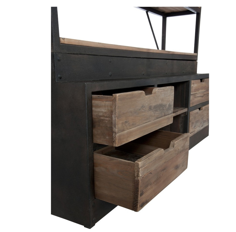 Originale et élégante, cette bibliothèque apportera une note industrielle à votre déco. Elle est faite en bois massif foncé avec une structure en métal noir. Disposant de 4 étagères, de 4 tiroirs et de 2 niches ouvertes, elle offre un large espace pour ranger vos livres, vos objets de décoration et son échelle amovible permettra d'atteindre facilement les étagères supérieures. Les autres articles de la collection peuvent compléter cette bibliothèque pour harmoniser votre intérieur. Dimensions : L 160 x H 243 x P 45 cm Garantie : 2 ans