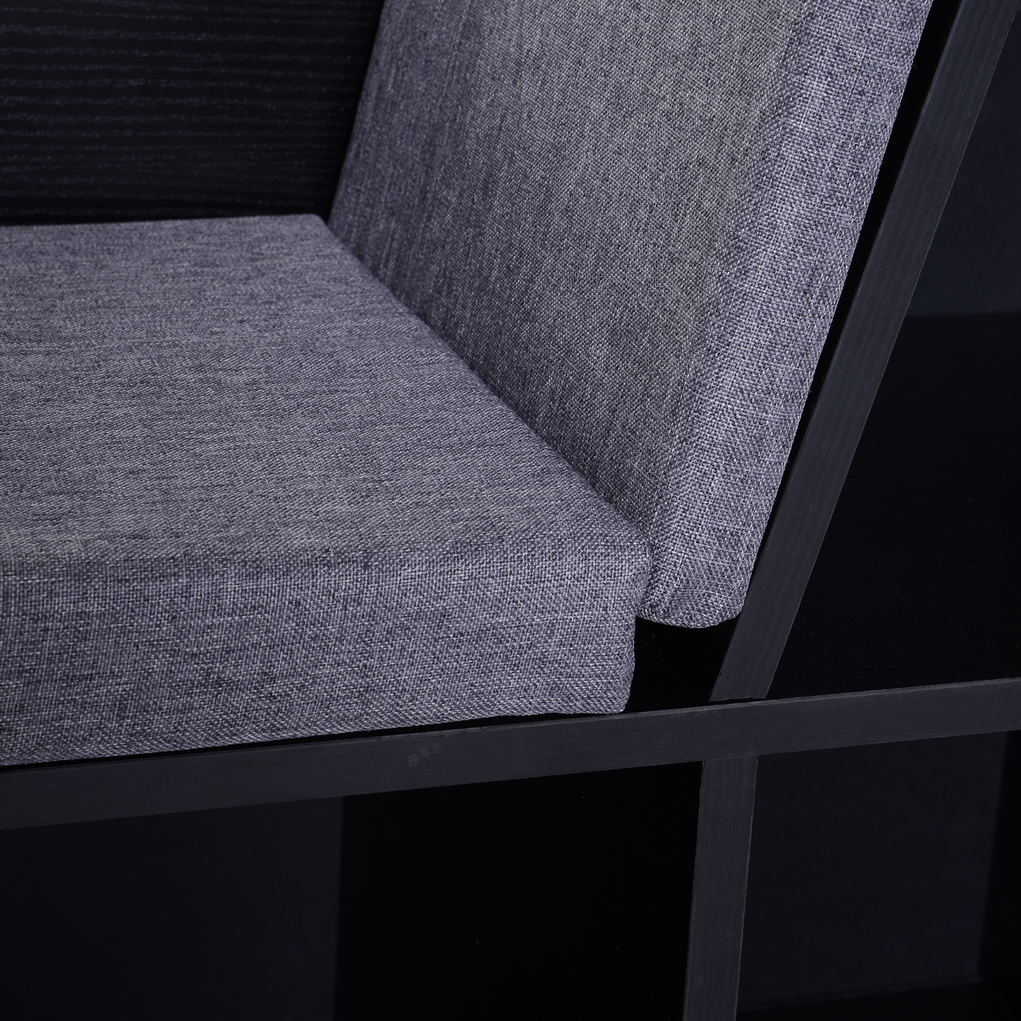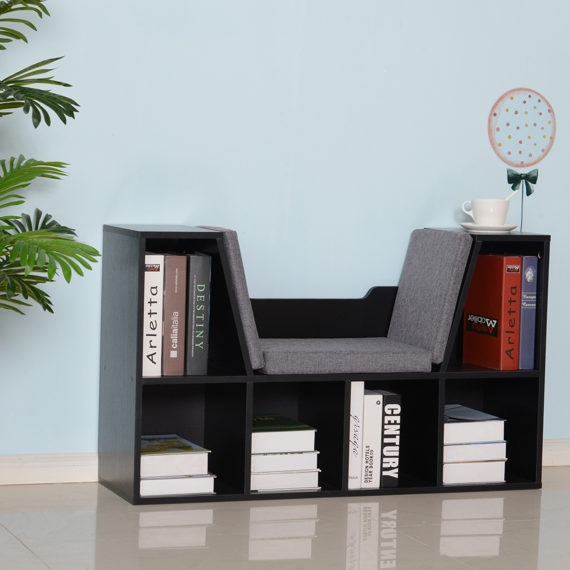Bibliothèque banc 2 en 1 design contemporain 6 casiers 3 coussins fournis 102L x 30l x 61H cm noir gris