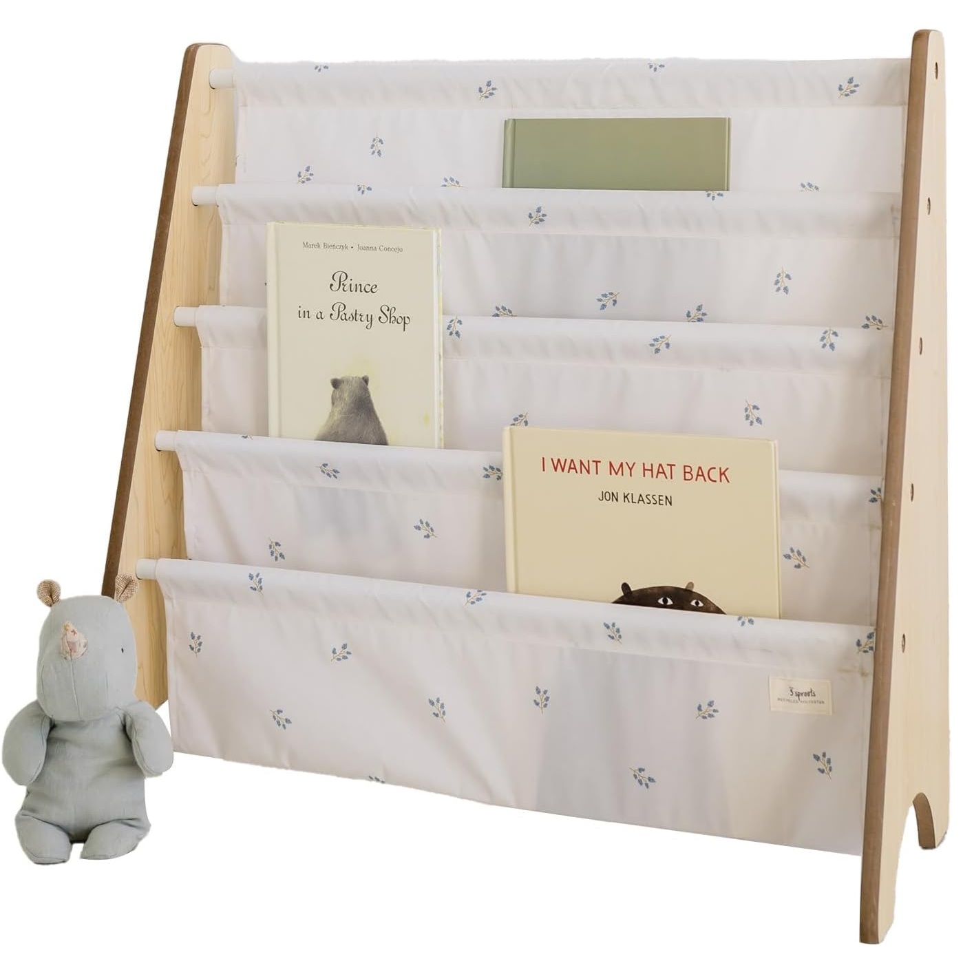 Rangement livres en tissu recyclé myrtilles Beige crème, une bibliothèque pour enfant de la marque 3 Sprouts.