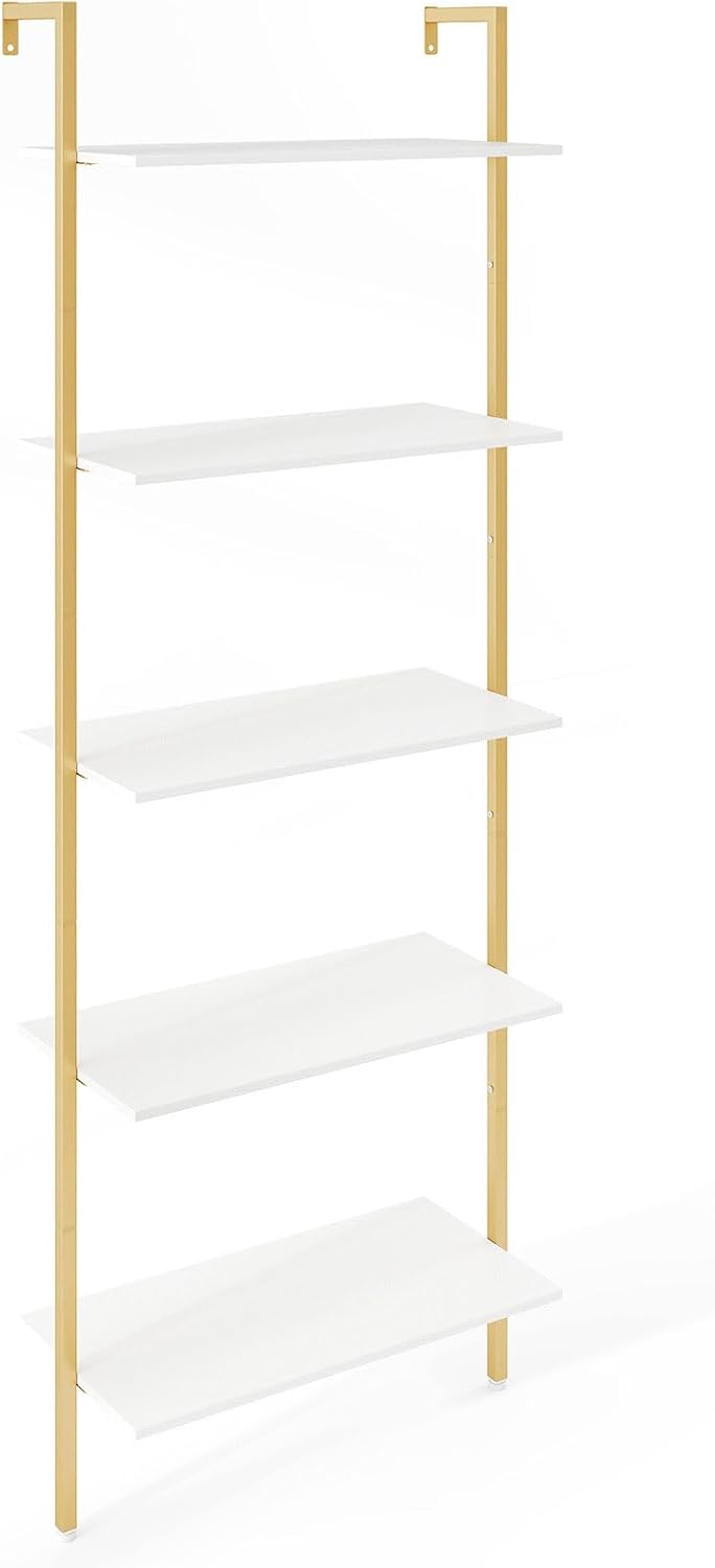 Cette étagère murale de rangement comporte 5 niveaux et utilise parfaitement l'espace vertical pour tous vos objets du quotidien. Les étagères ont un cadre métallique de haute qualité, assez robuste pour durer des années. Les dispositifs anti-basculement et les pieds réglables améliorent également considérablement la stabilité, créant ainsi un environnement sûr pour vous et votre famille. Les étagères murales sont gain de place, idéales pour les petits espaces. Avec un style attrayant et élégant, cette étagère de rangement est l'ajout parfait à votre décoration intérieure. Que ce soit comme étagère de rangement ou étagère d'exposition, elle peut valoriser votre espace de vie et améliorer votre qualité de vie.