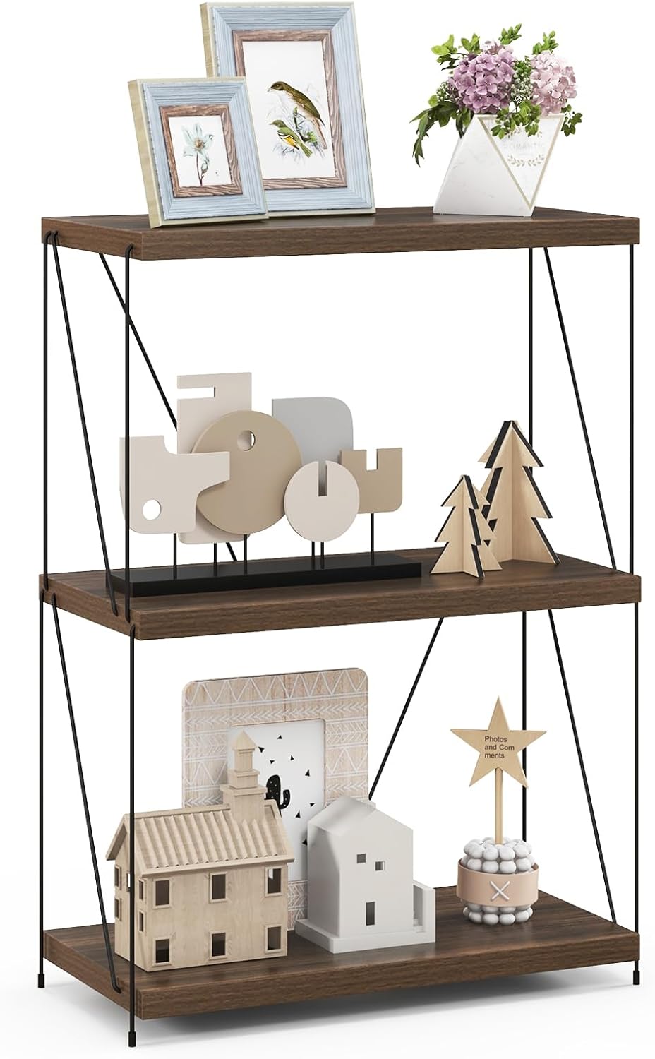 Bibliothèque étagère ouverte à 3 niveaux, étagère de rangement avec cadre métallique robuste,industriel