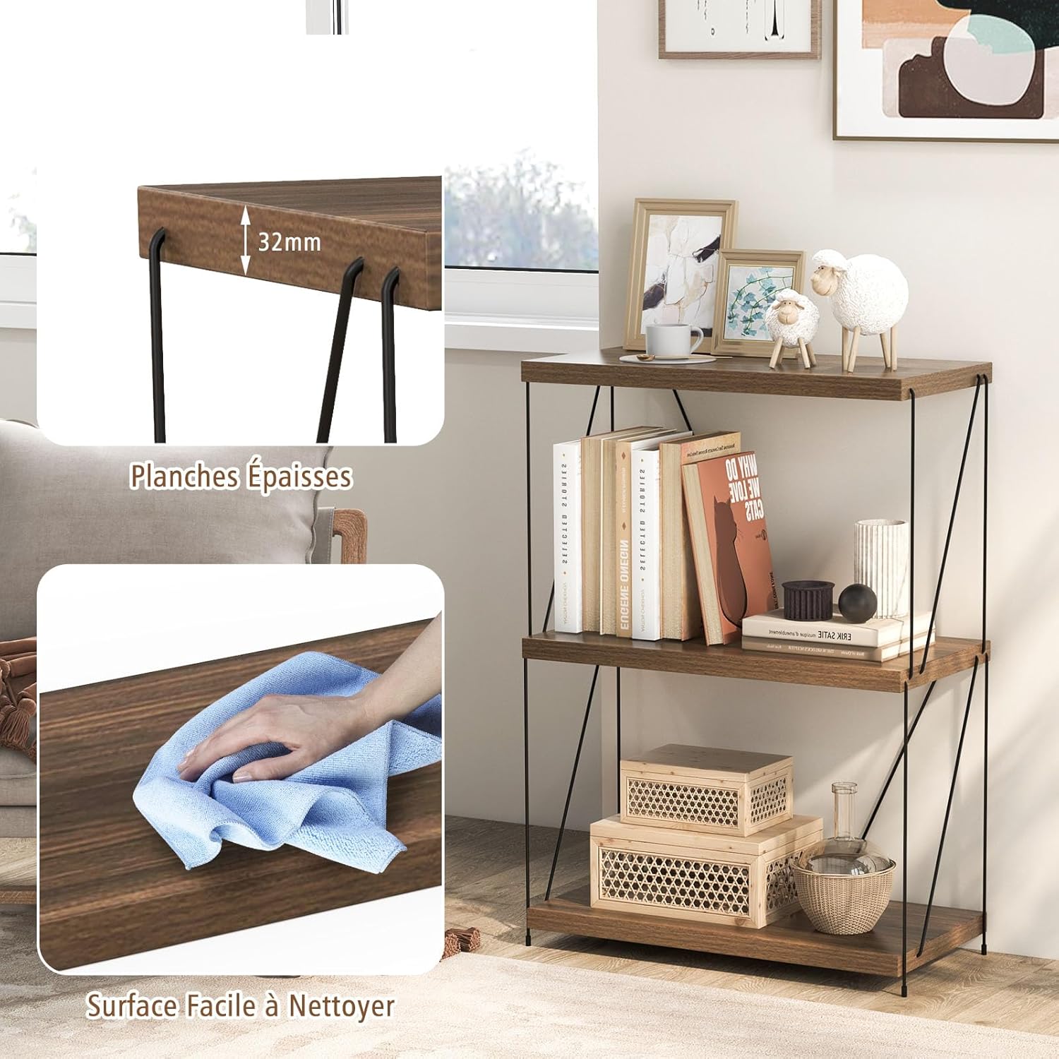 - Adapté à divers scénarios : Cette étagère est parfaitement adaptée à différents environnements et usages. Que ce soit dans votre salon, bureau, chambre à coucher ou étude, cette étagère polyvalente se marie parfaitement avec différents styles de décoration, ce qui en fait un choix polyvalent pour vous.