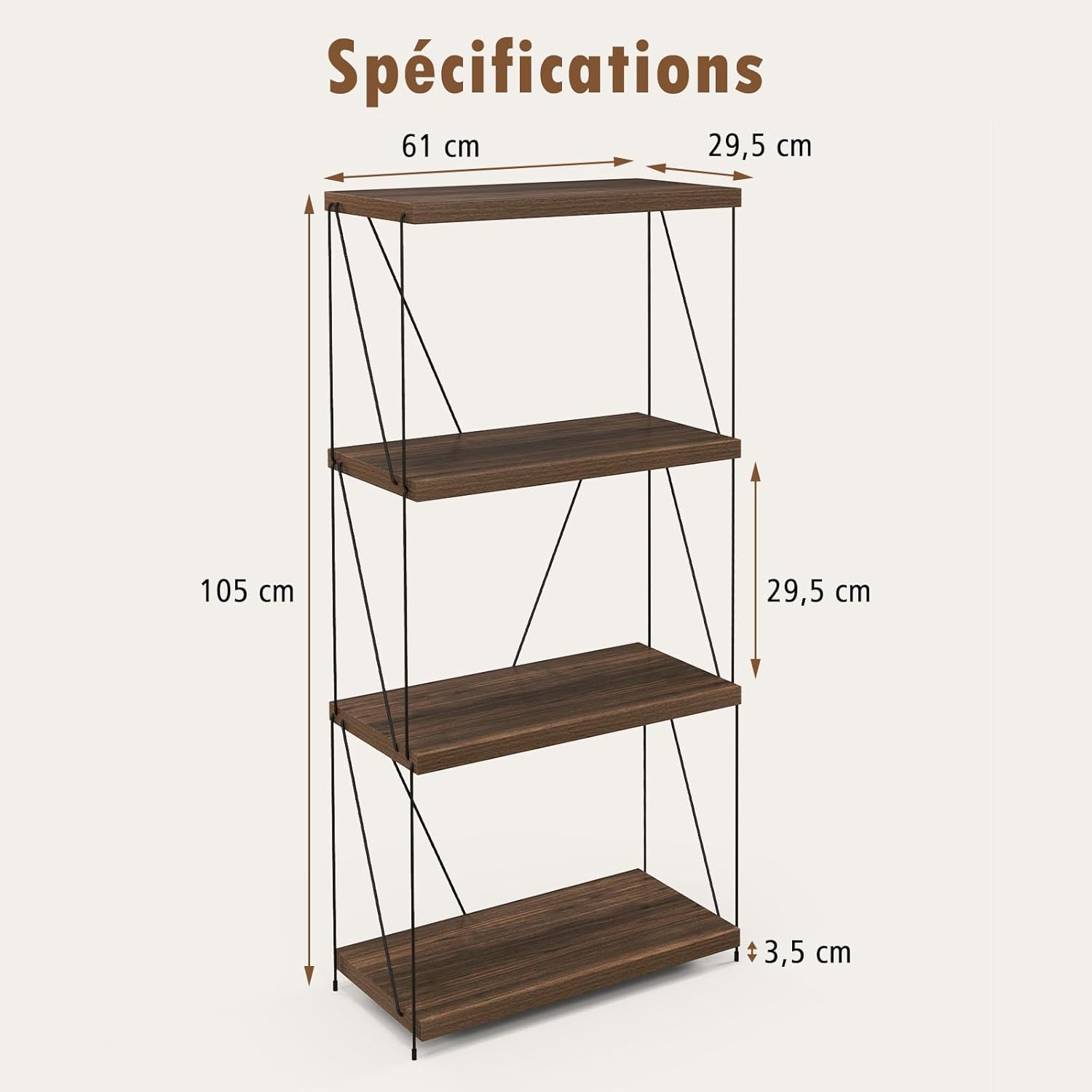 | Libellé | Bibliothèque étagère ouverte à 4 niveaux, étagère de rangement avec cadre métallique robuste,industriel |
