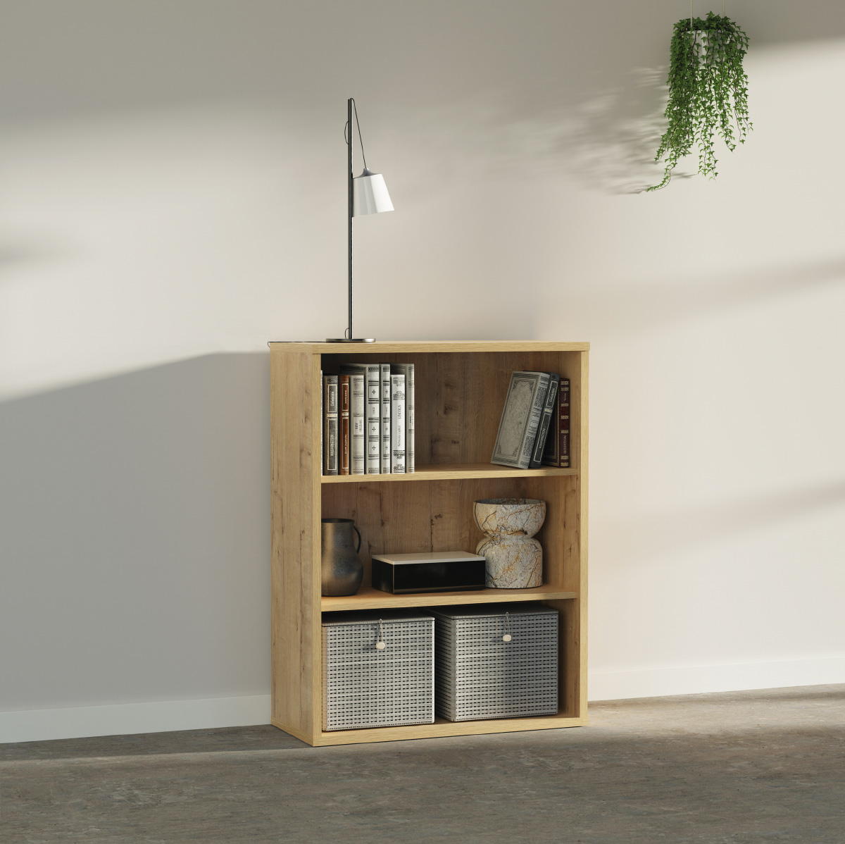 Bibliothèque, meuble de rangement coloris chêne doré. Equipée de 2 étagères réglables en hauteur. Produit de fabrication Espagnol certifié PEFC. Livré en kit. Dimensions : Longueur 75,50 x Profondeur 33 x hauteur 99,50 cm Dimensions supérieures du meuble : Longueur 70,5 x Profondeur 30 x hauteur 42 cm Dimensions inférieures du meuble : Longueur 70,5 x Profondeur 30 x hauteur 21,50 cm Matière : panneaux de particules et mélamine haute densité Coloris : chêne doré Poids : 22,50 kg