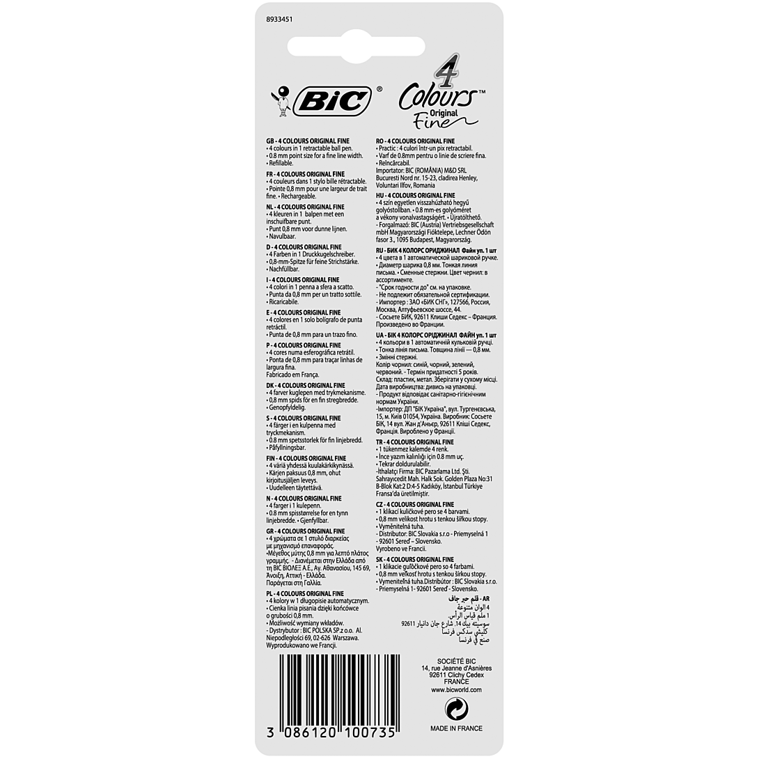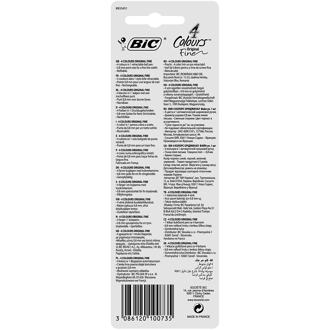 | Libellé | BIC 4 Couleurs Original Stylo-Bille Rétractable Pointe Fine (0,8 mm) |