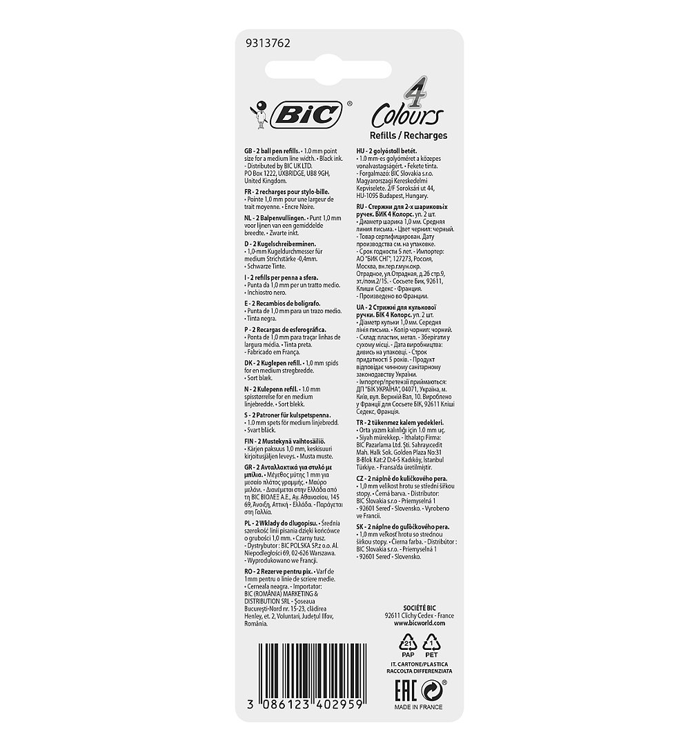 Libellé BIC 4 Couleurs Recharges pour Stylo-Bille Pointe Fine - Vert, Blister de 2 BIC