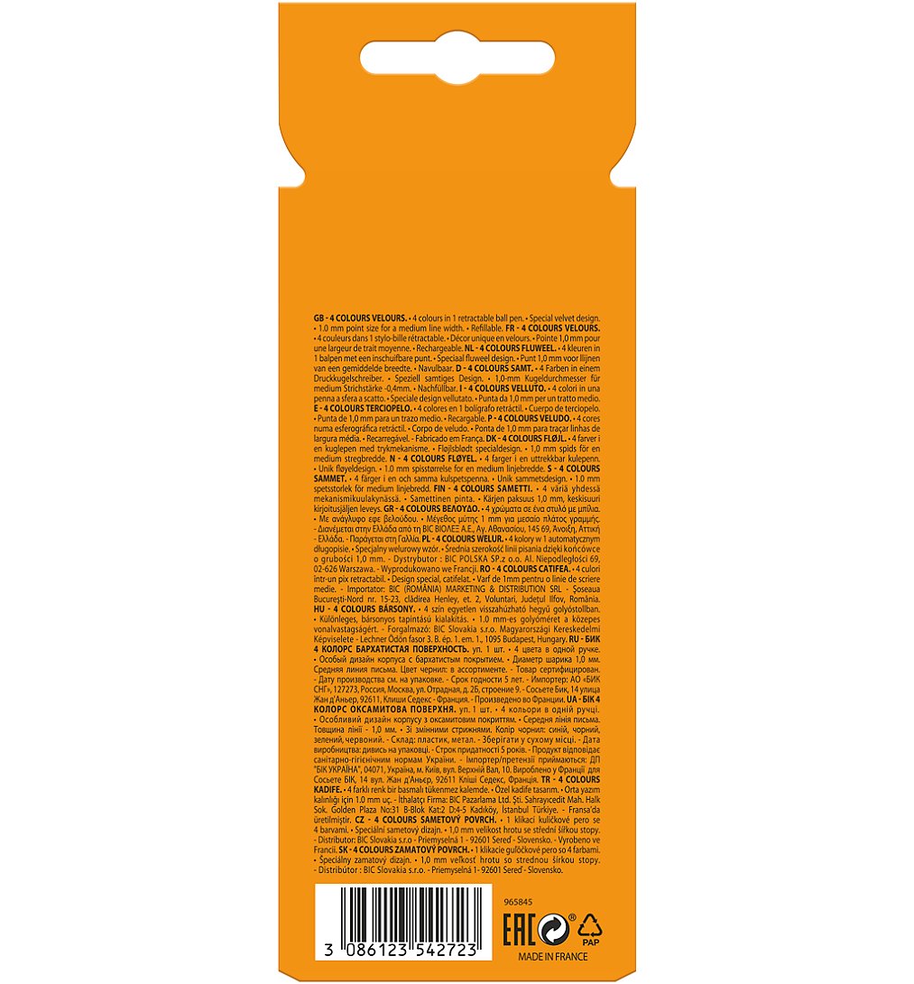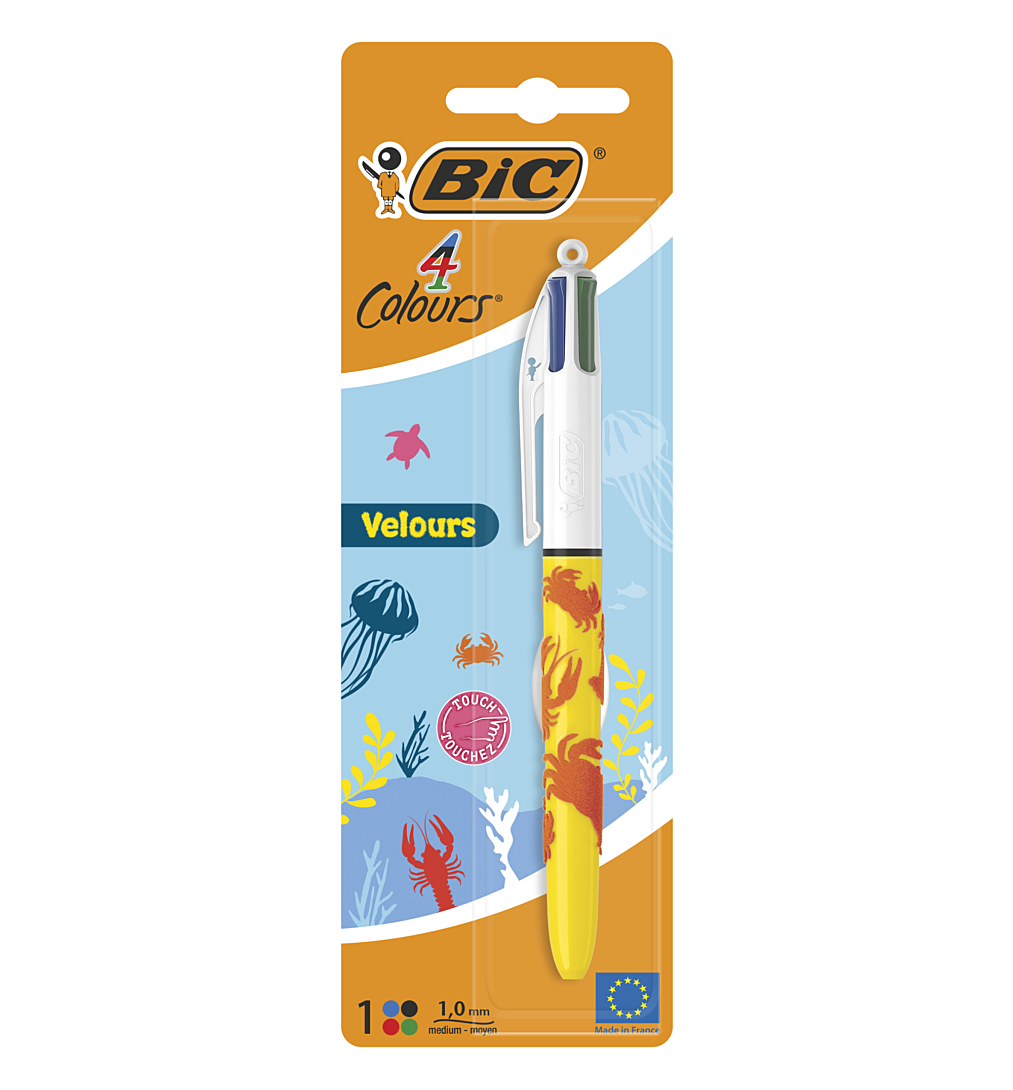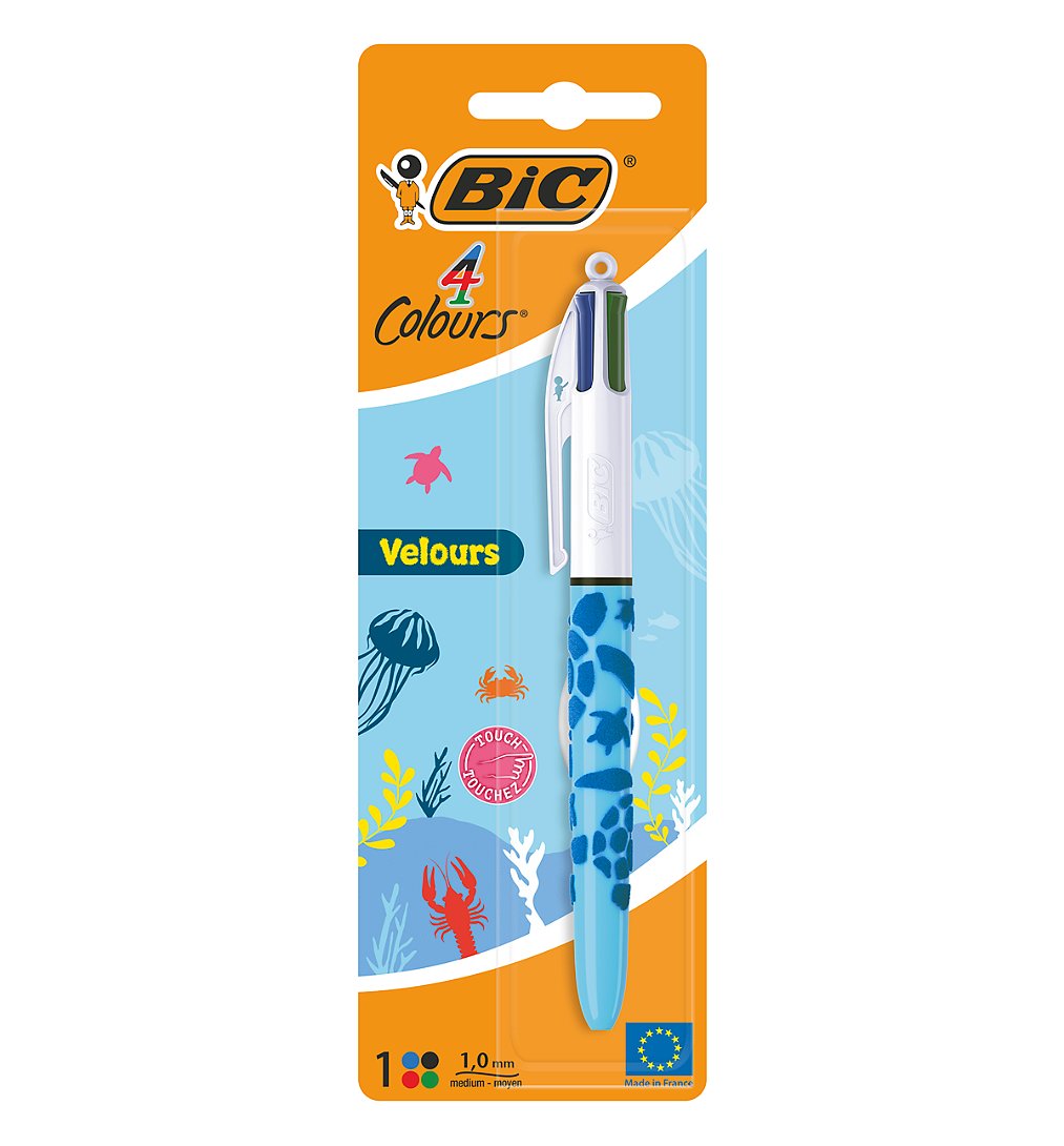| Libellé | BIC 4 Couleurs Velours Stylo-Bille Rétractables Pointe Moyenne (1,0 mm) - Motifs Assortis |