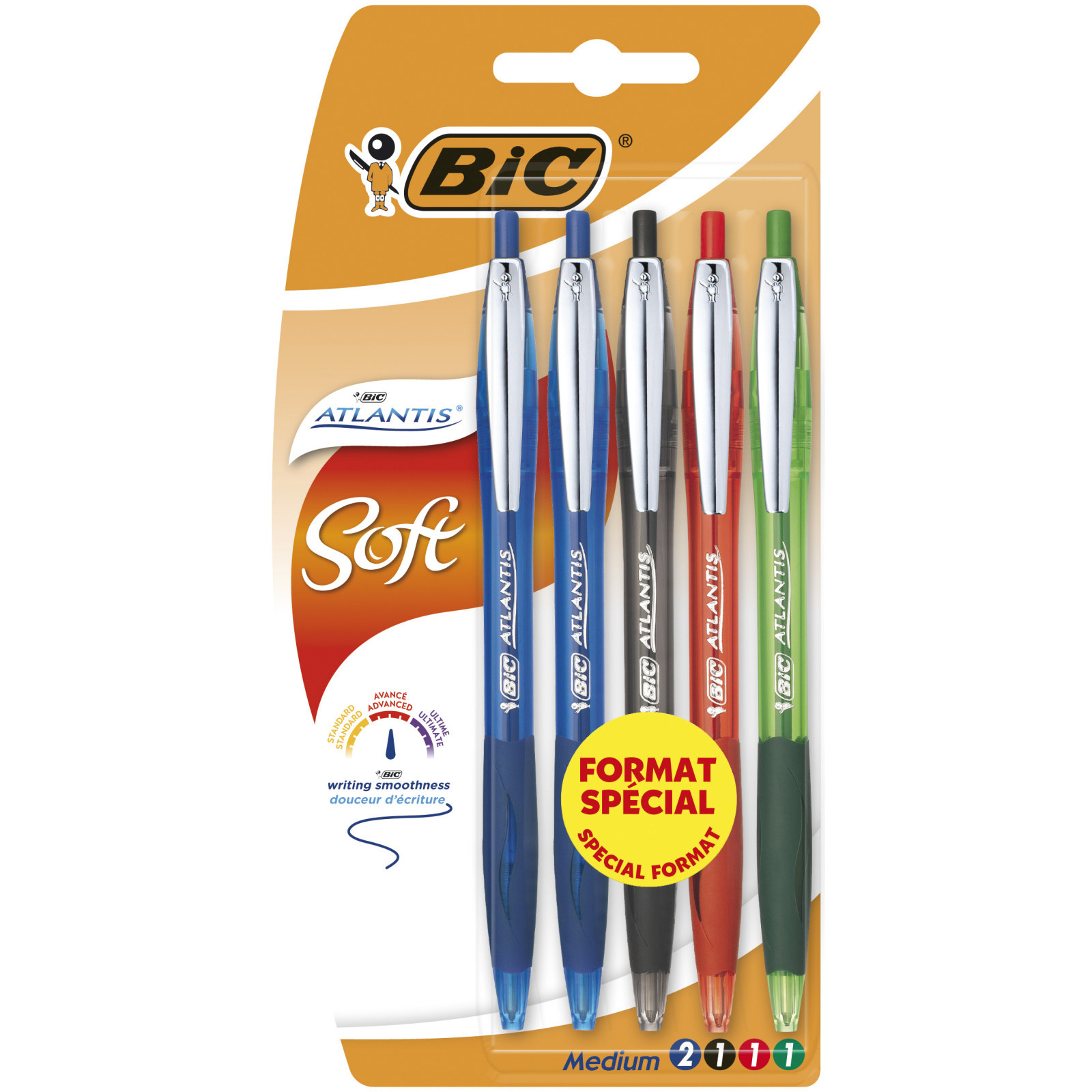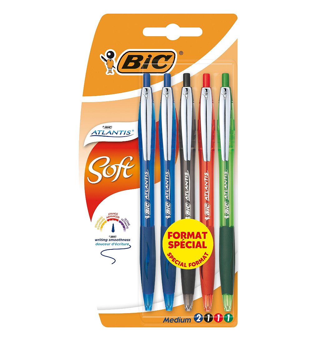 | Libellé | BIC Atlantis Soft Stylos-Bille Rétractables Pointe Moyenne (1,0 mm) - Couleurs Assorties, Format Spécial de 5 |