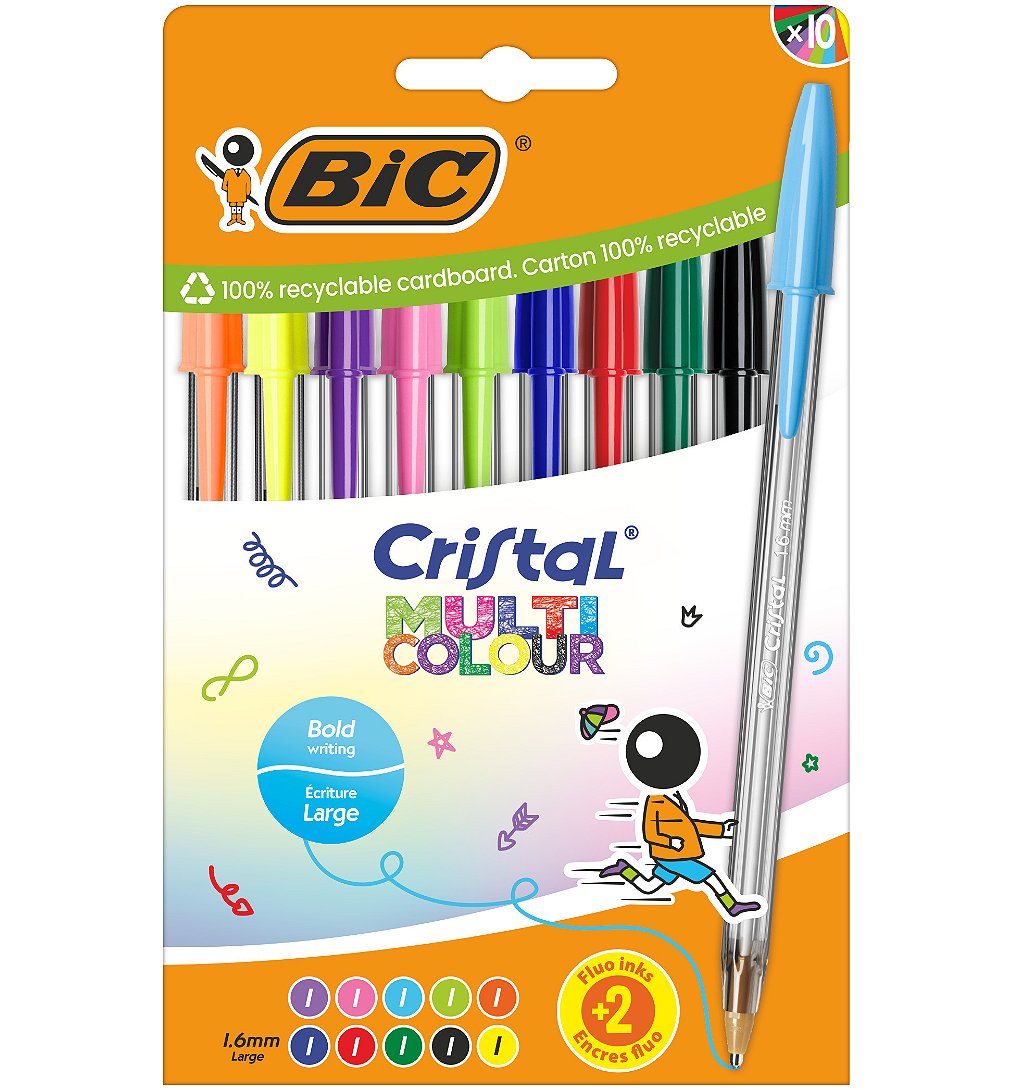 | Libellé | BIC Cristal Multicolour Stylos-Bille Pointe Large (1,6 mm) - Couleurs Assorties, Boite de 10 |