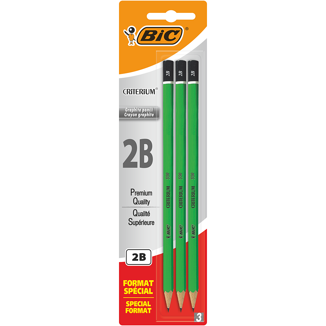 Connu de tous mais jamais égalé, le crayon graphite BIC Criterium 550 est un crayon à papier authentique en bois. Sa mine graphite est très résistante et se taille sans difficulté, car elle est collée dans le bois sur toute la longueur du crayon. Cette offre spéciale de 3 crayons 2B est également disponible dans une gamme de mine HB et 2H.