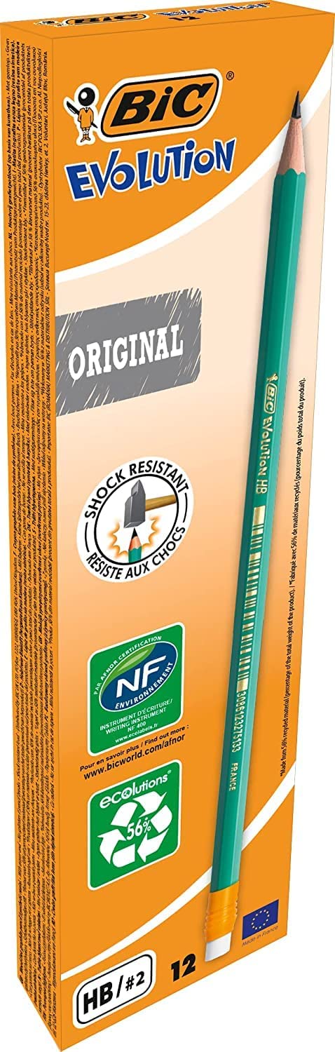 | Libellé | BIC Evolution Original Crayons à Papier avec Gomme Intégrée , Certifiés NF Environnement, Pointe HB, Boîte de 1 |