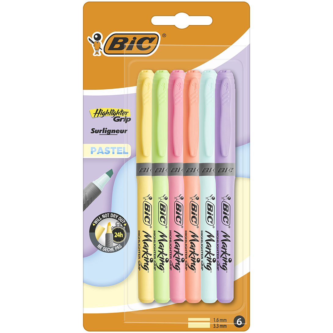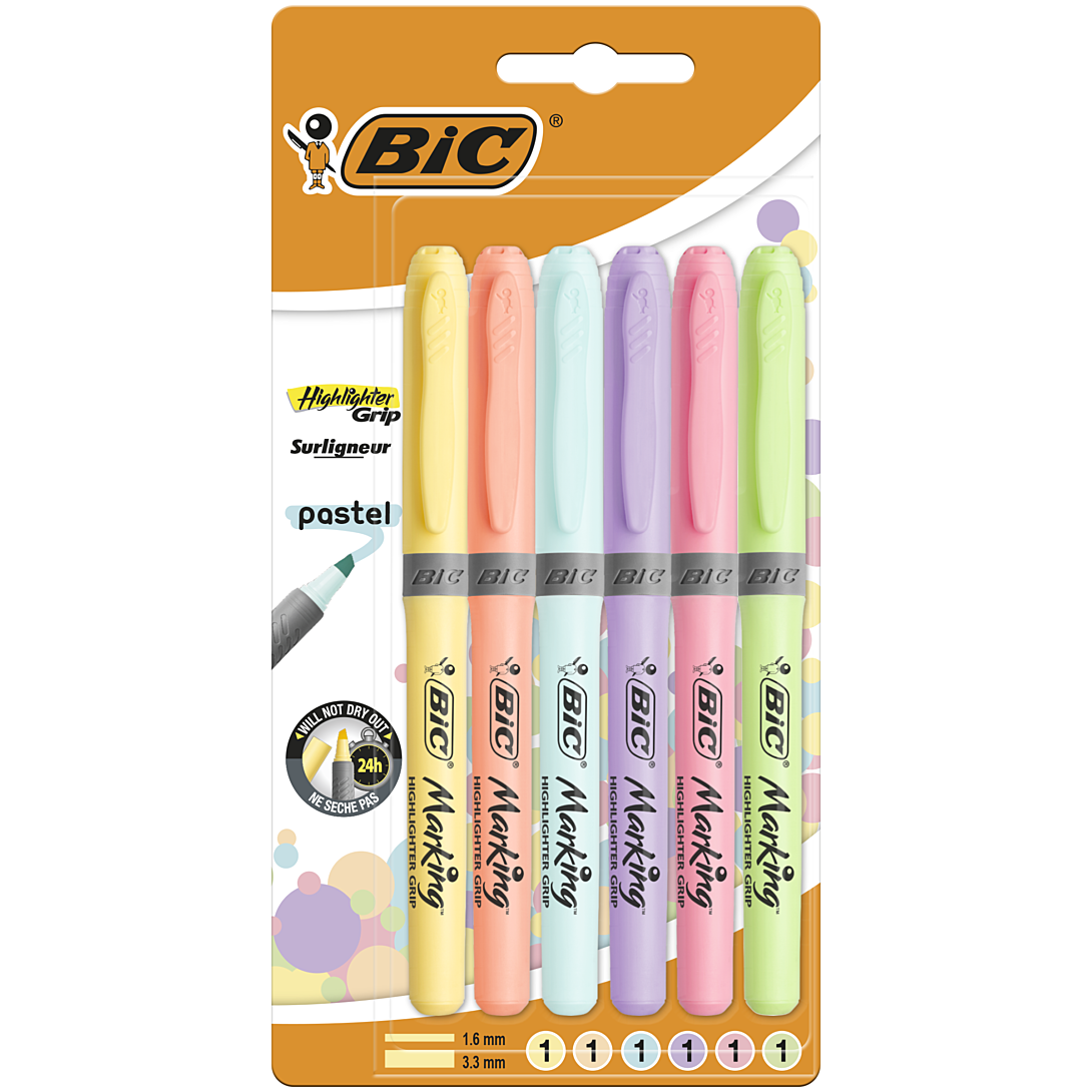 | Libellé | BIC Highlighter Grip Pastel Surligneurs Pointe Biseautée - Couleurs Assorties x6 |
