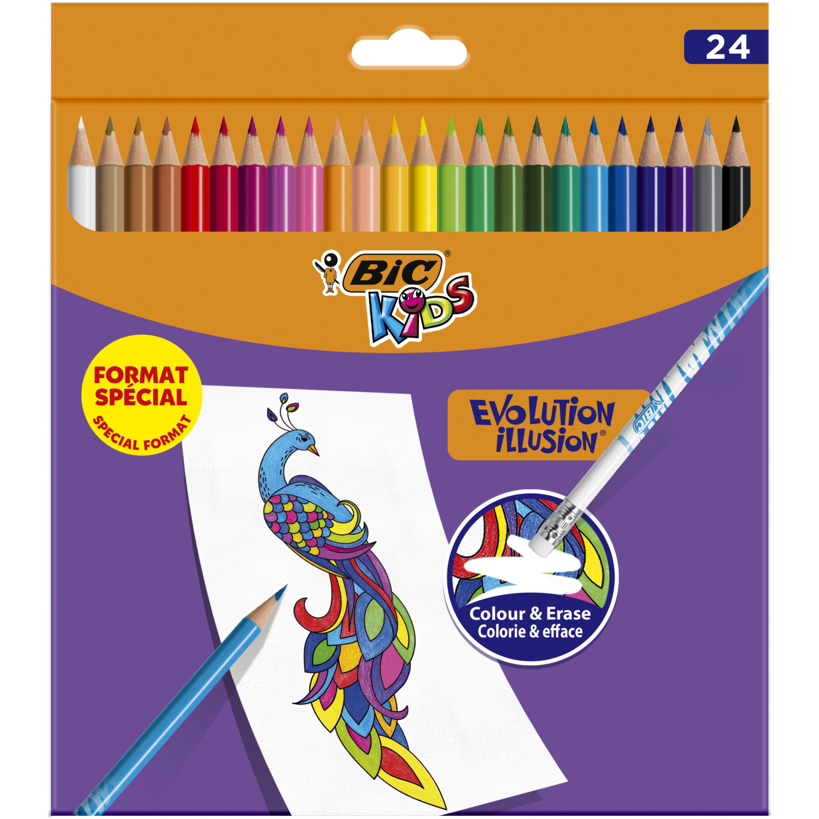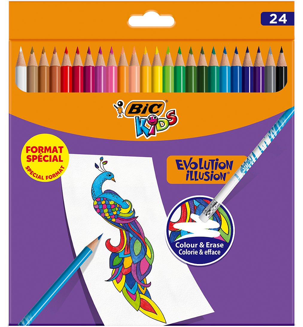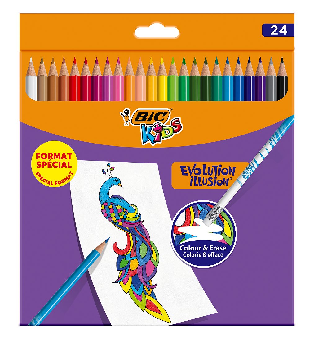 | Libellé | BIC Kids Evolution Illusion Crayons de Couleur Effaçables, Couleurs Assorties, Etui Carton Format Spécial de 24 |