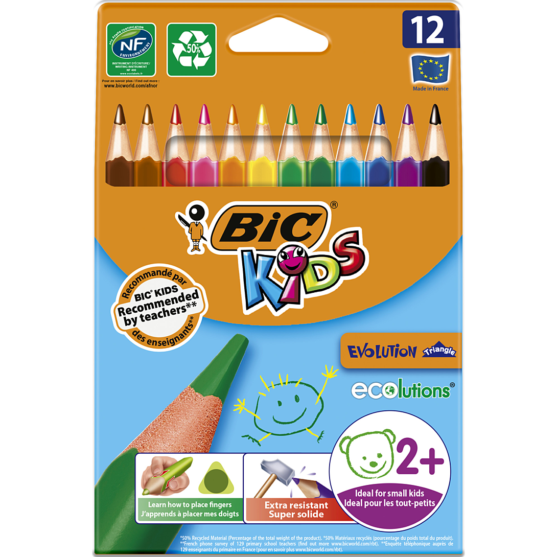 | Libellé | BIC Kids Evolution Triangle Crayons de Couleur Triangulaires - Couleurs Assorties, Étui Carton de 12 |