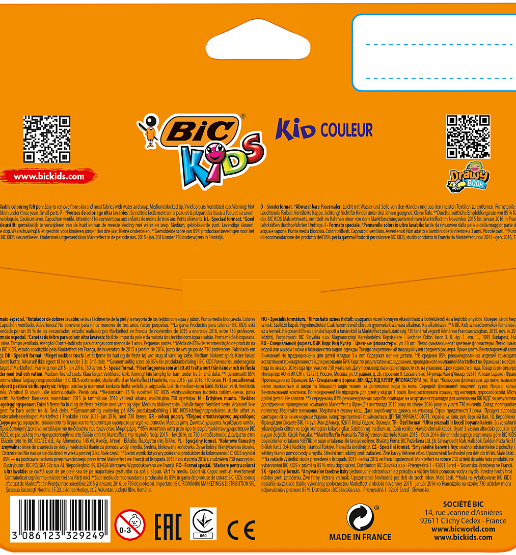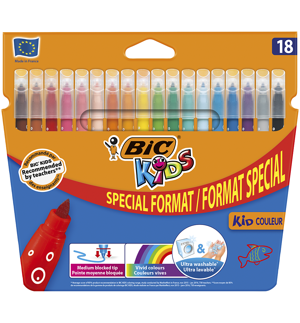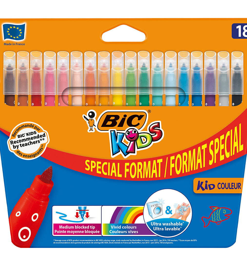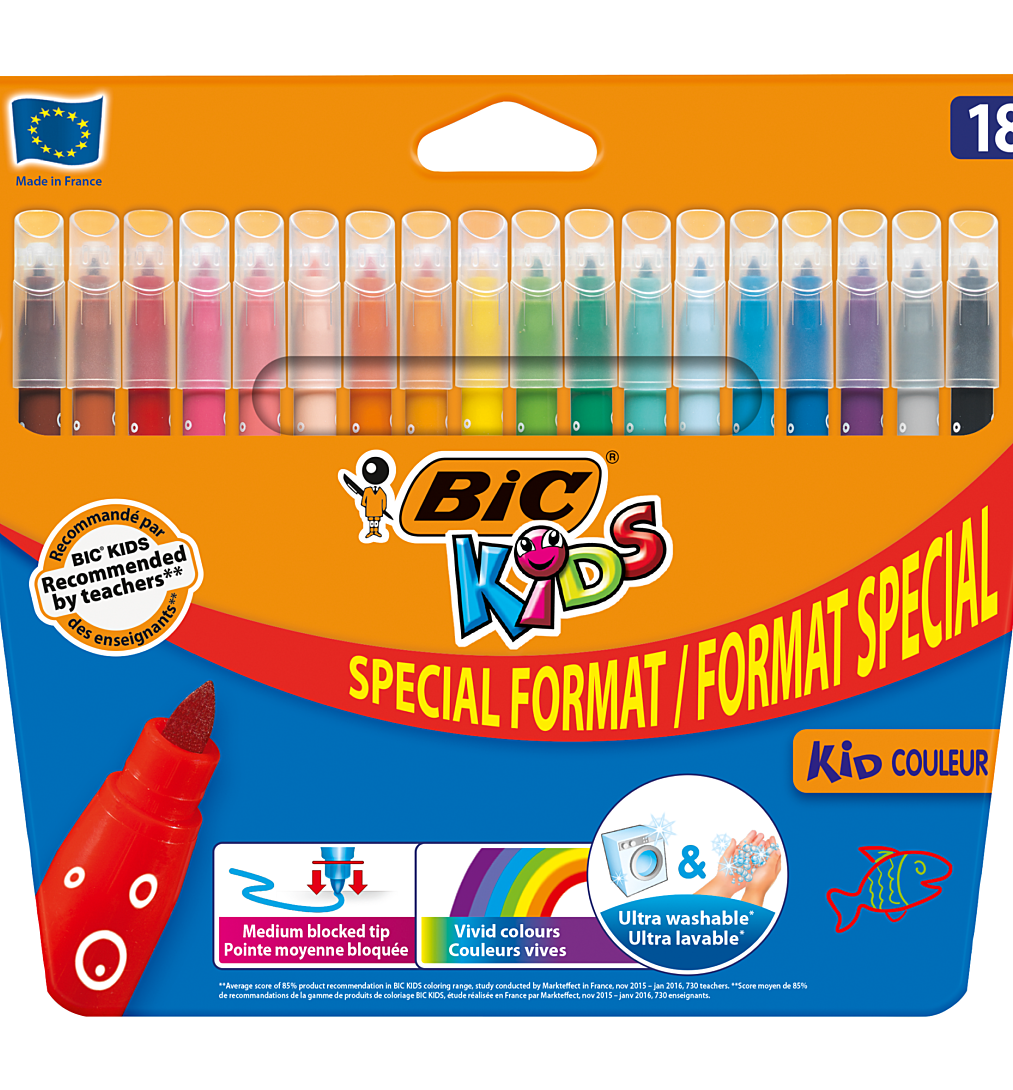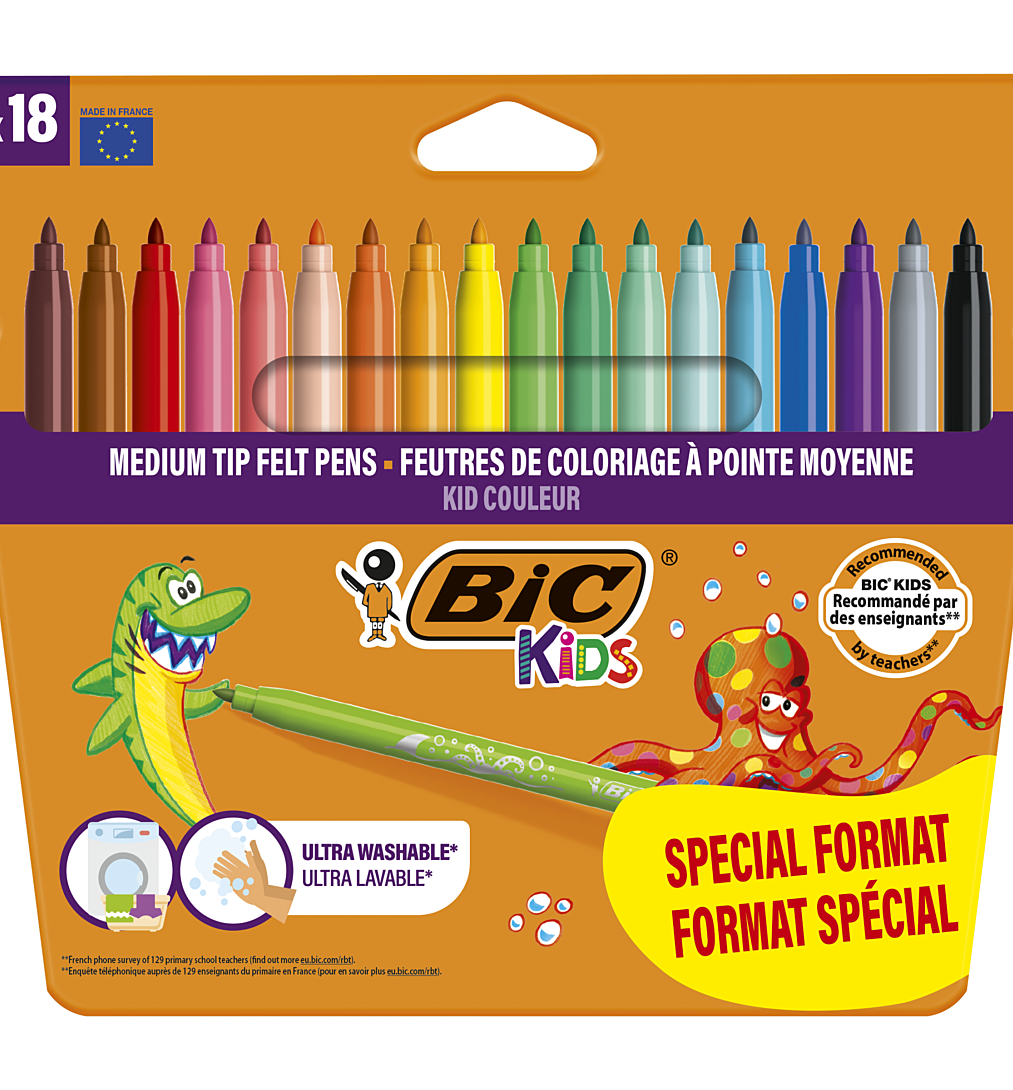 | Libellé | BIC Kids Kid Couleur Feutres de Coloriage à Pointe Moyenne - Couleurs Assorties Format Spécial de 18 |