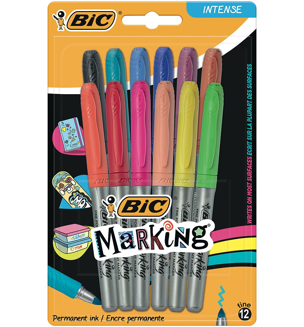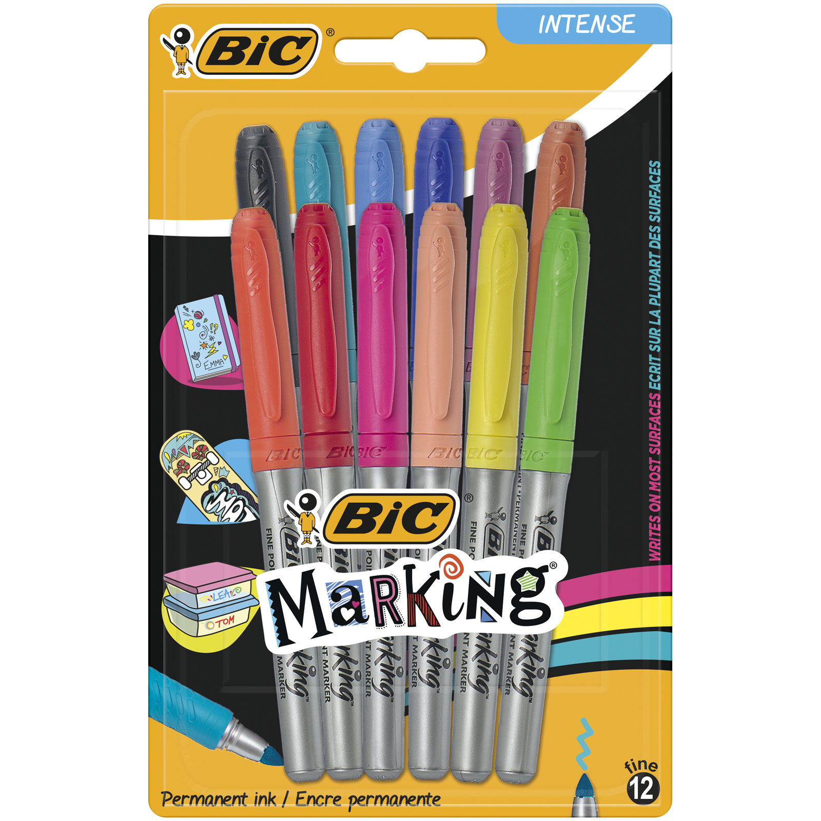 BIC Marking Marqueurs Permanents - pointe moyenne - Couleurs intenses assorties, Pack de 12
