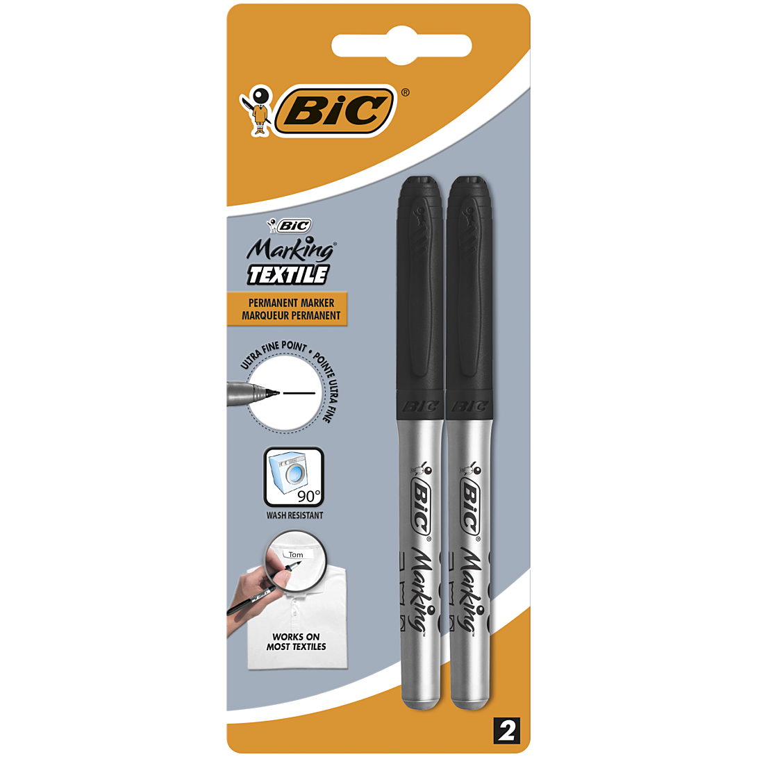 | Libellé | BIC Marking Marqueurs Textile permanents ultra fins - Noirs, paquet de 2 |