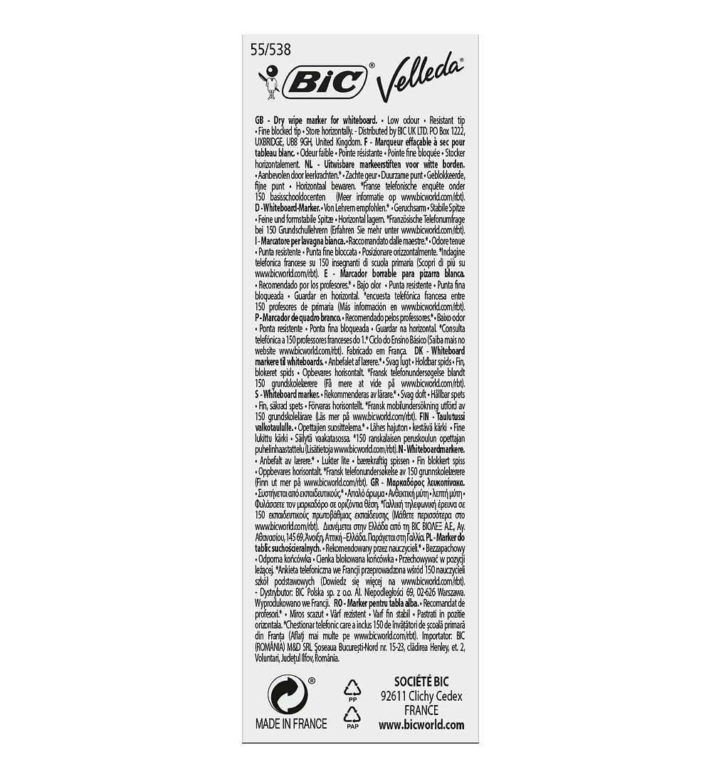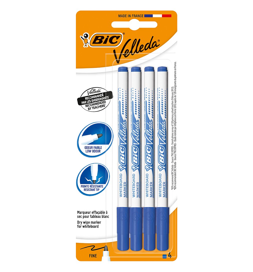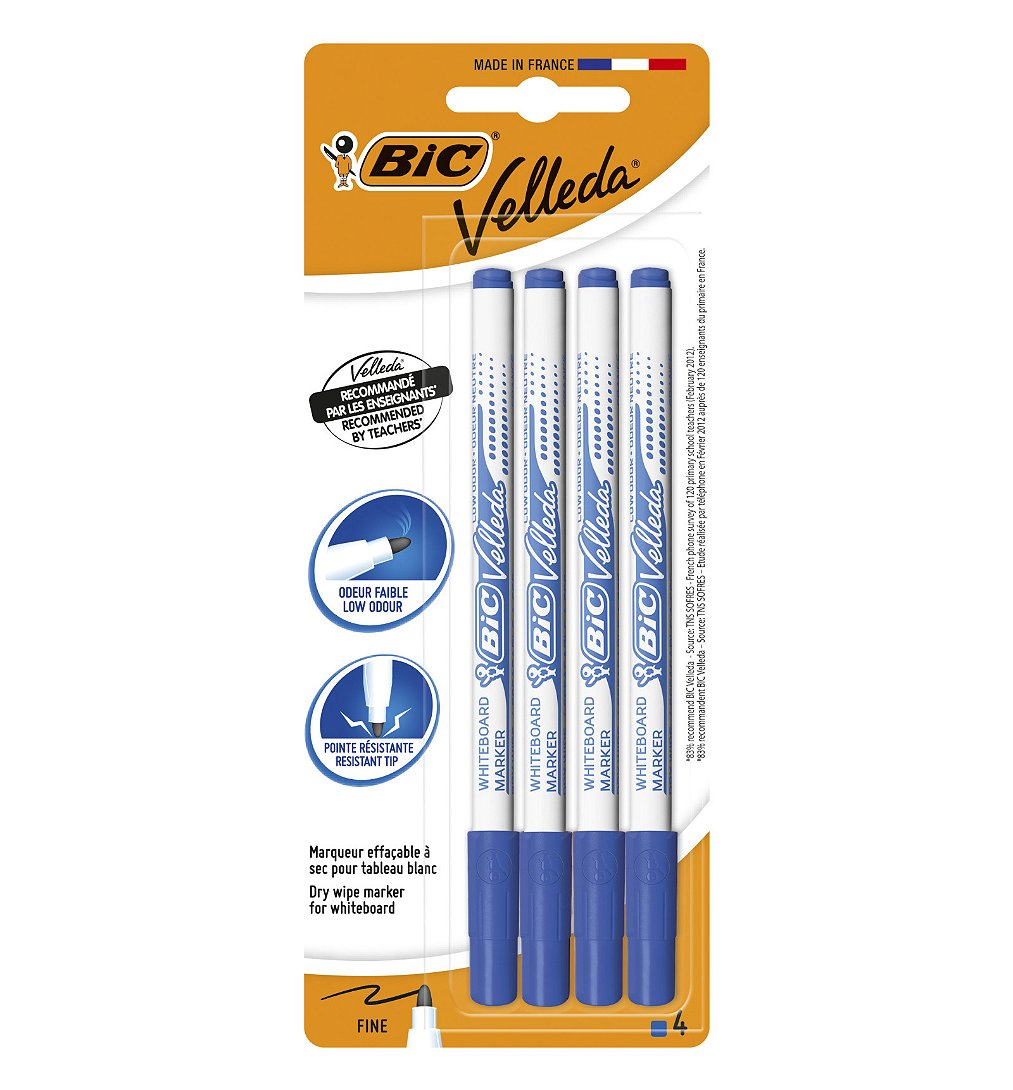 | Libellé | BIC Velleda 1721 Feutres pour Tableau Blanc Effaçables à Sec Pointe Conique Fine - Bleu, Blister de 4 |