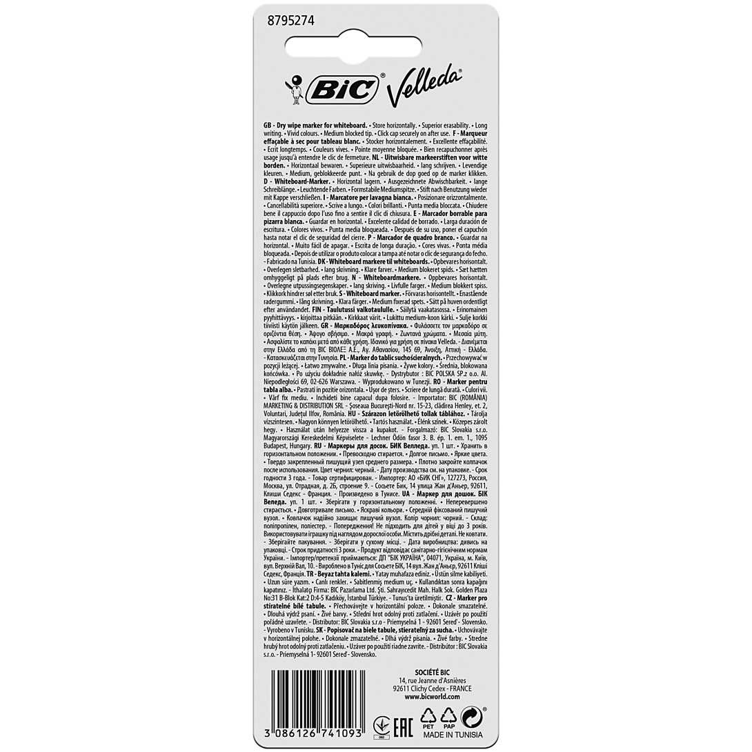 | Libellé | BIC Velleda 1741 Feutre pour Tableau Blanc Effaçables à Sec, Pointe Conique Moyenne - Noir |