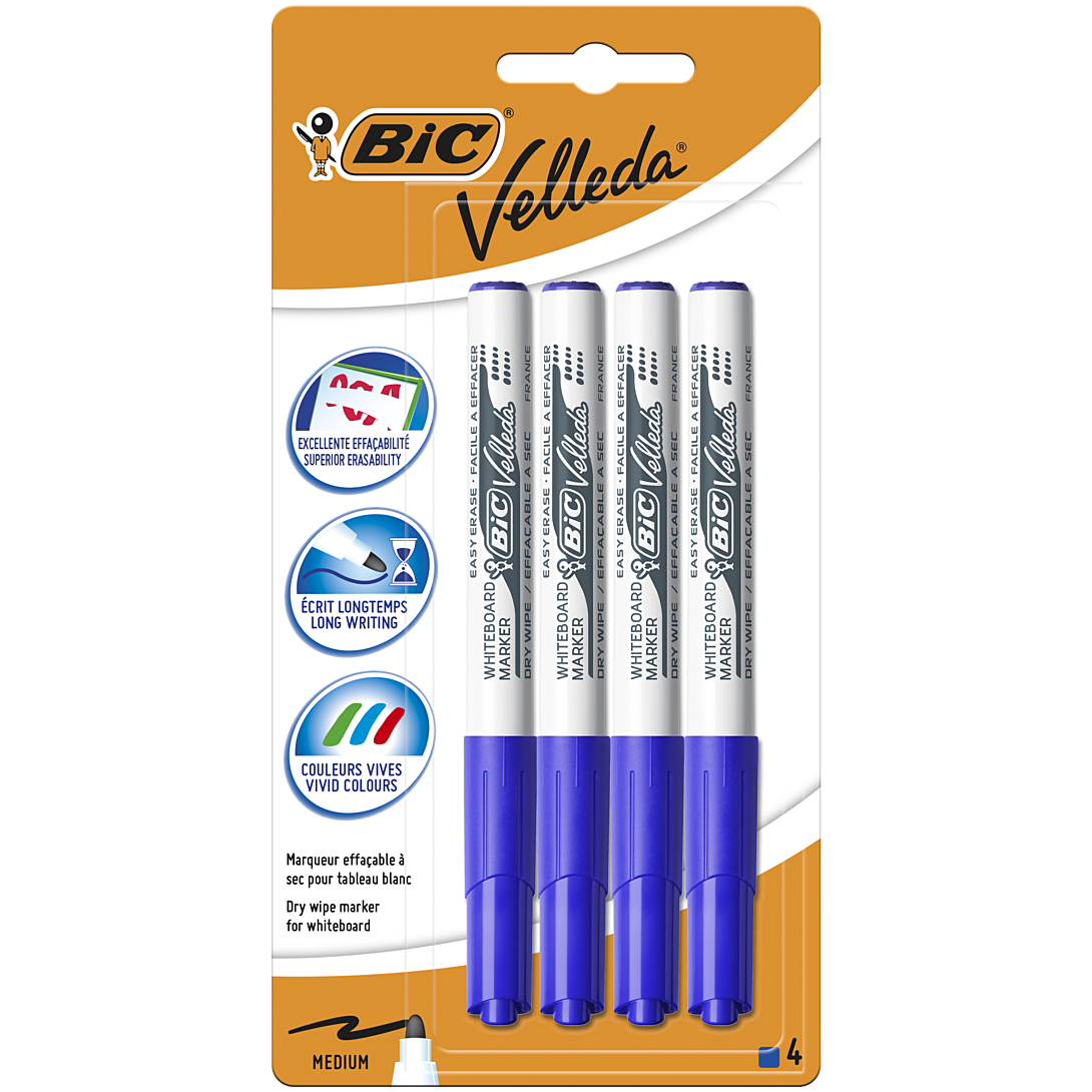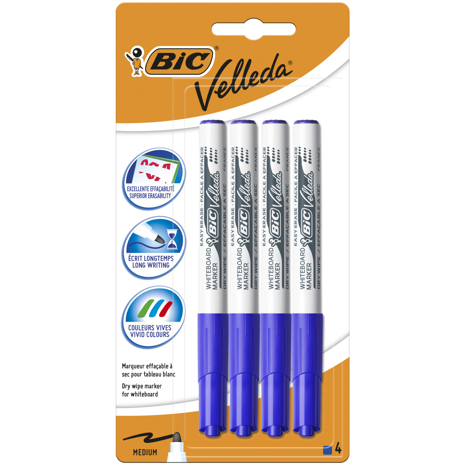| Libellé | BIC Velleda 1741 Feutres pour Tableau Blanc Effaçables à Sec, Pointe Conique Moyenne - Bleu, Blister de 4 |