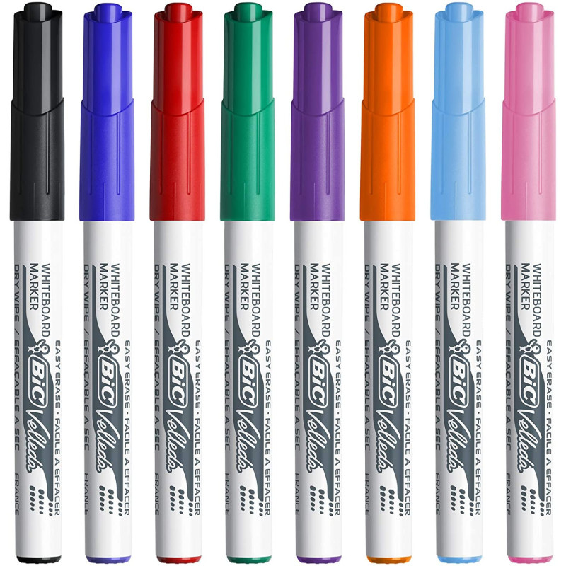 Passer le carrousel d'imagesLes stylos pour tableau blanc BIC Velleda 1741 de BIC se déclinent en 8 couleurs vives et éclatantes (noir, bleu, rouge, vert, jaune, orange, rose et marron) et s'effacent d'un seul coup. Ils ont une plume moyenne pour des lignes de 1,4 mm de large. Feutres pour Tableau Blanc Effaçables à Sec - Pointe Conique Moyenne - Couleurs Assorties, Pochette de 8