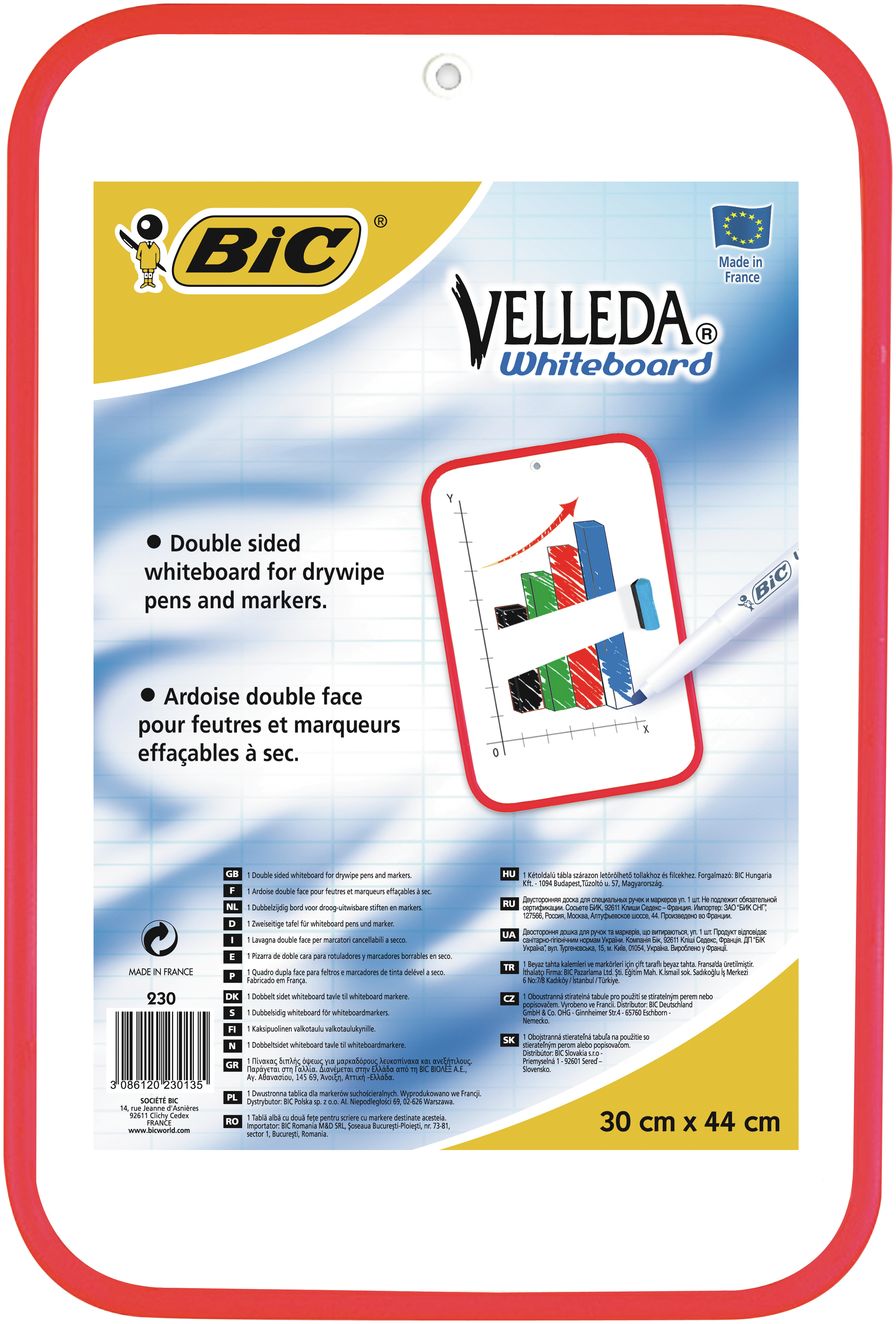 Libellé BIC Velleda Tableau Double Face Effaçable à Sec (30 x 44 cm) - Rouge, Lot de 1