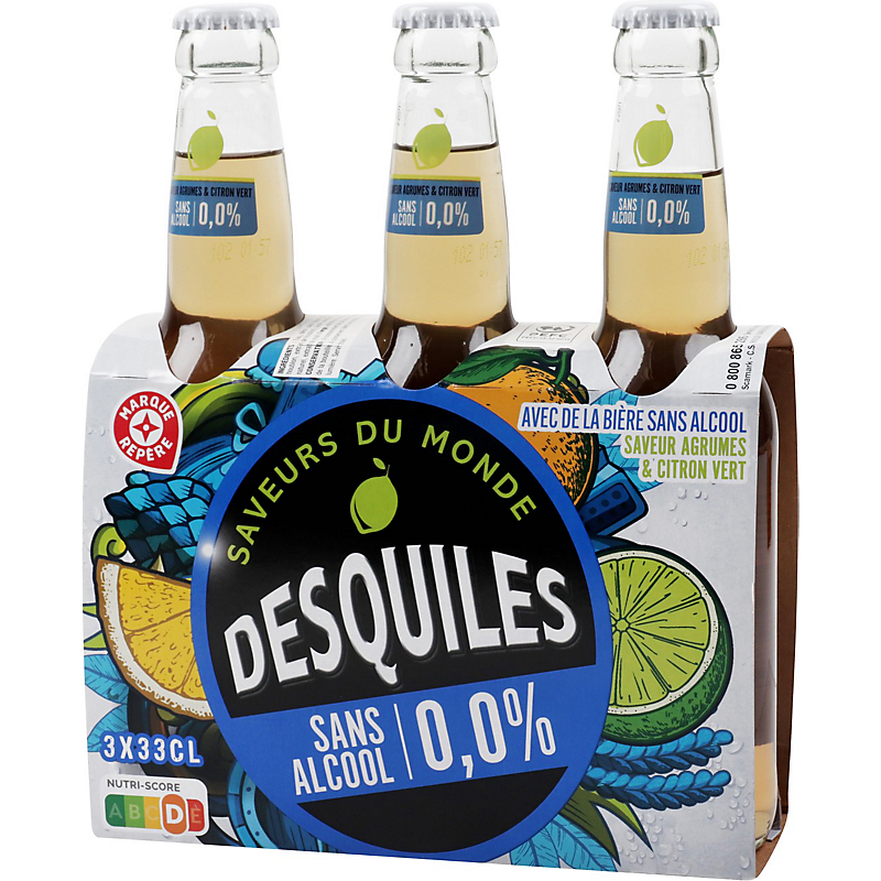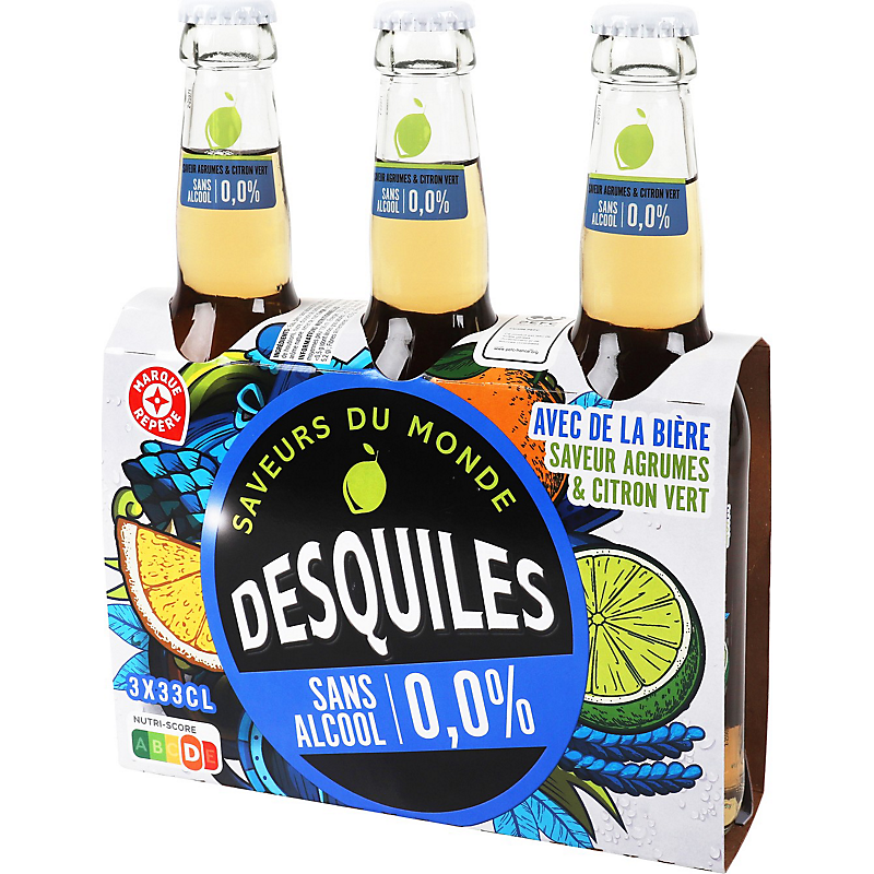 Boisson à base de bière sans alcool saveur agrumes et citron vert DESQUILES
