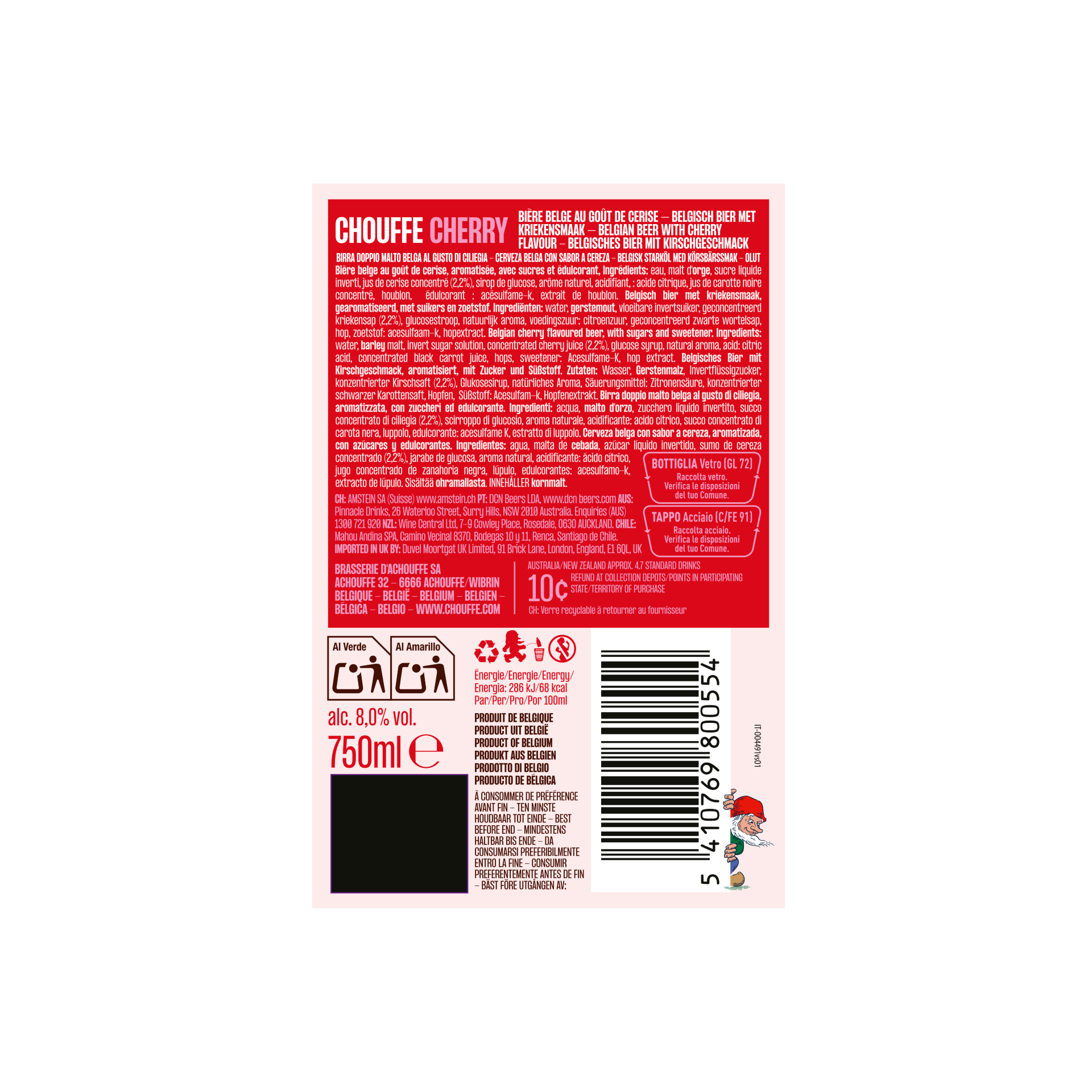 | Libellé | Bière Fruit beer, 75 cl - Rouge - 8% vol. |