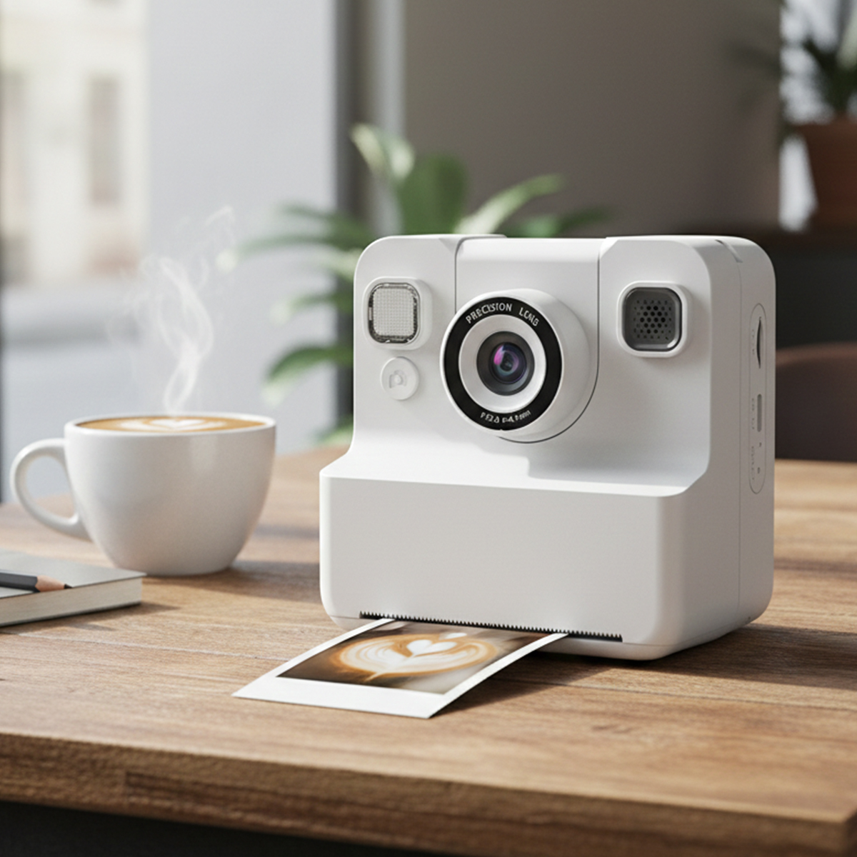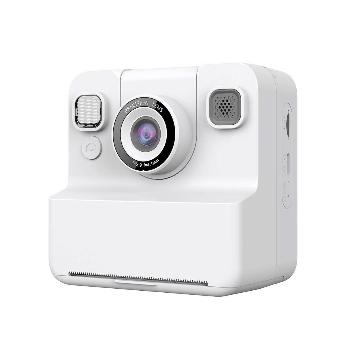 Cet appareil photo numérique instantané permet de capturer des photos et de les imprimer immédiatement grâce à une technologie d'impression thermique sans encre. La résolution photo atteint 12 mégapixels et l'enregistrement vidéo s'effectue en 1080P Full HD. L'objectif pliable modulable facilite les prises de vue classiques et le mode selfie, avec flash intégré et zoom numérique 16x.