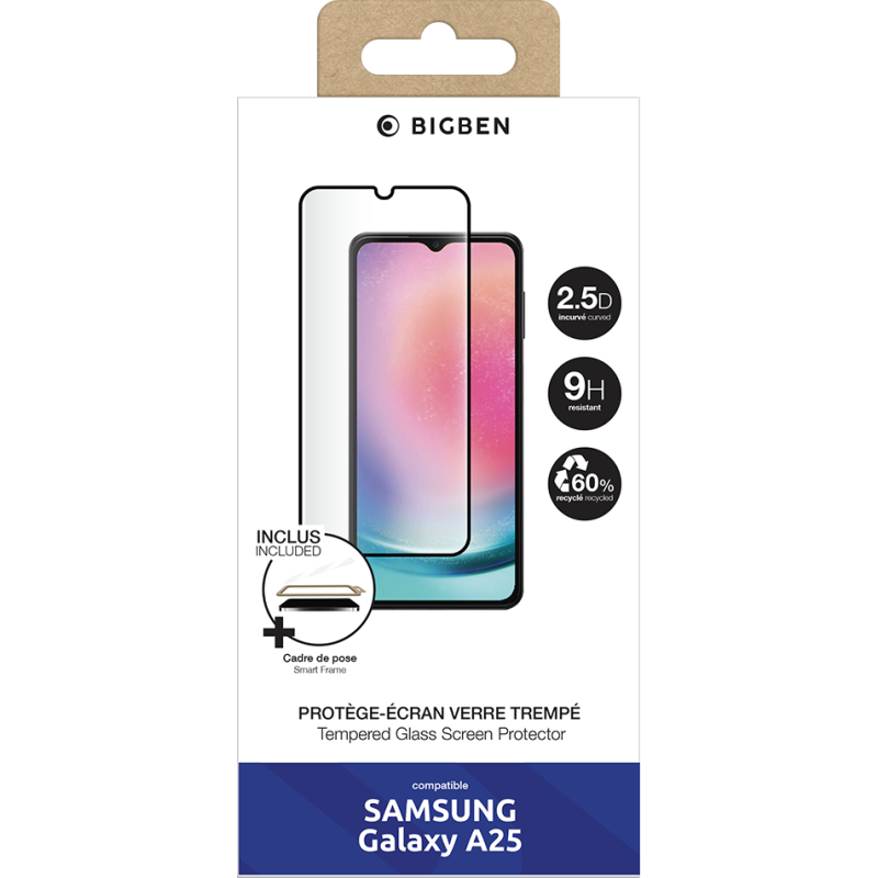 Libellé Bigben Protège écran 2.5D en Verre trempé pour Samsung Galaxy A25 + SmartFrame