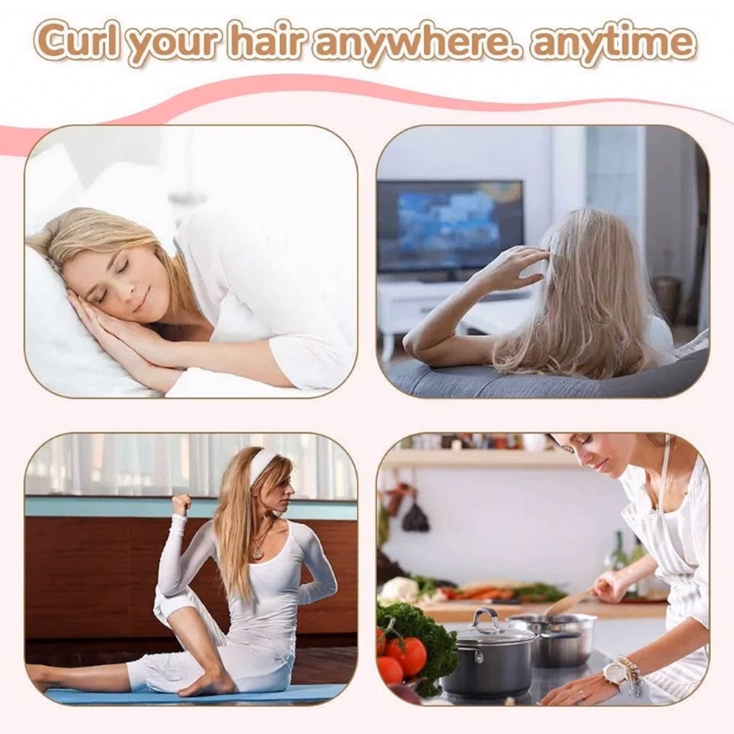 Facile à utiliser : Bouclez vos cheveux confortablement avec un élastique à friser pendant la nuit. Vous enroulez les cheveux autour du bigoudi et les fixez avec le petit « bonnet ».