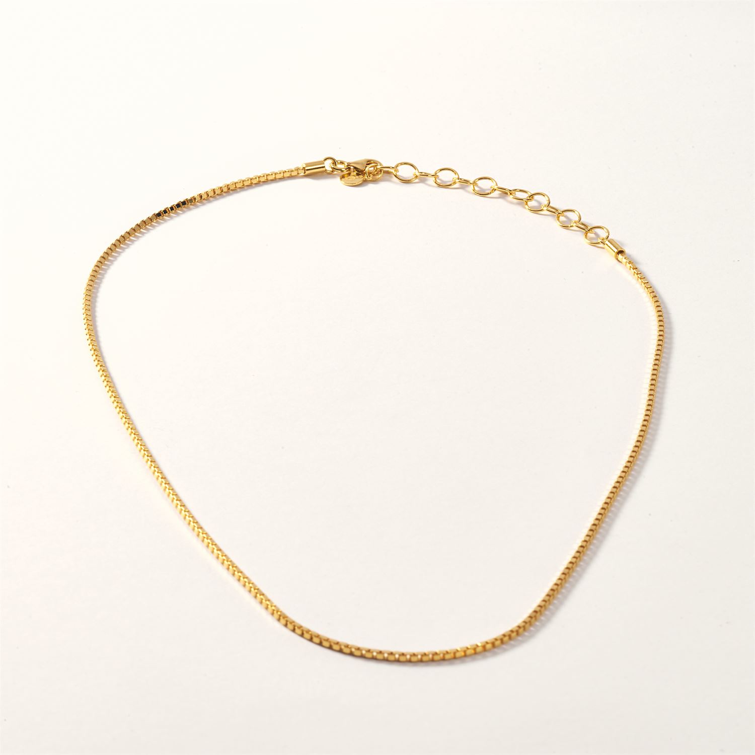 Pour ceux qui ont un goût pour les choses les plus belles de la vie, cela sera utile. Une chaîne de boîte classique qui est légère comme l'air et attrape la lumière juste à droite. Fabriqué en vermeil en or qu'une épaisse couche d'or de 18 km sur de l'argent sterling