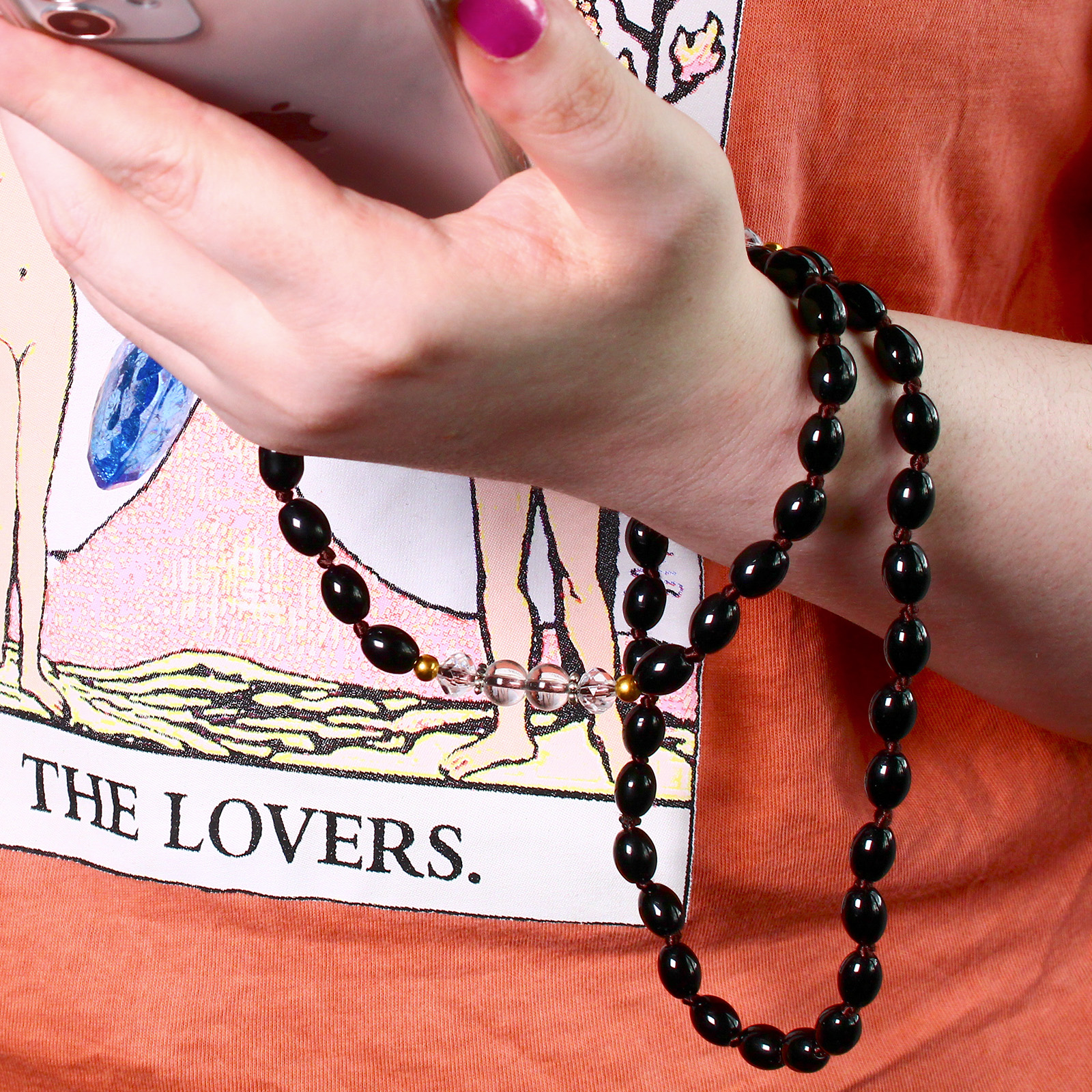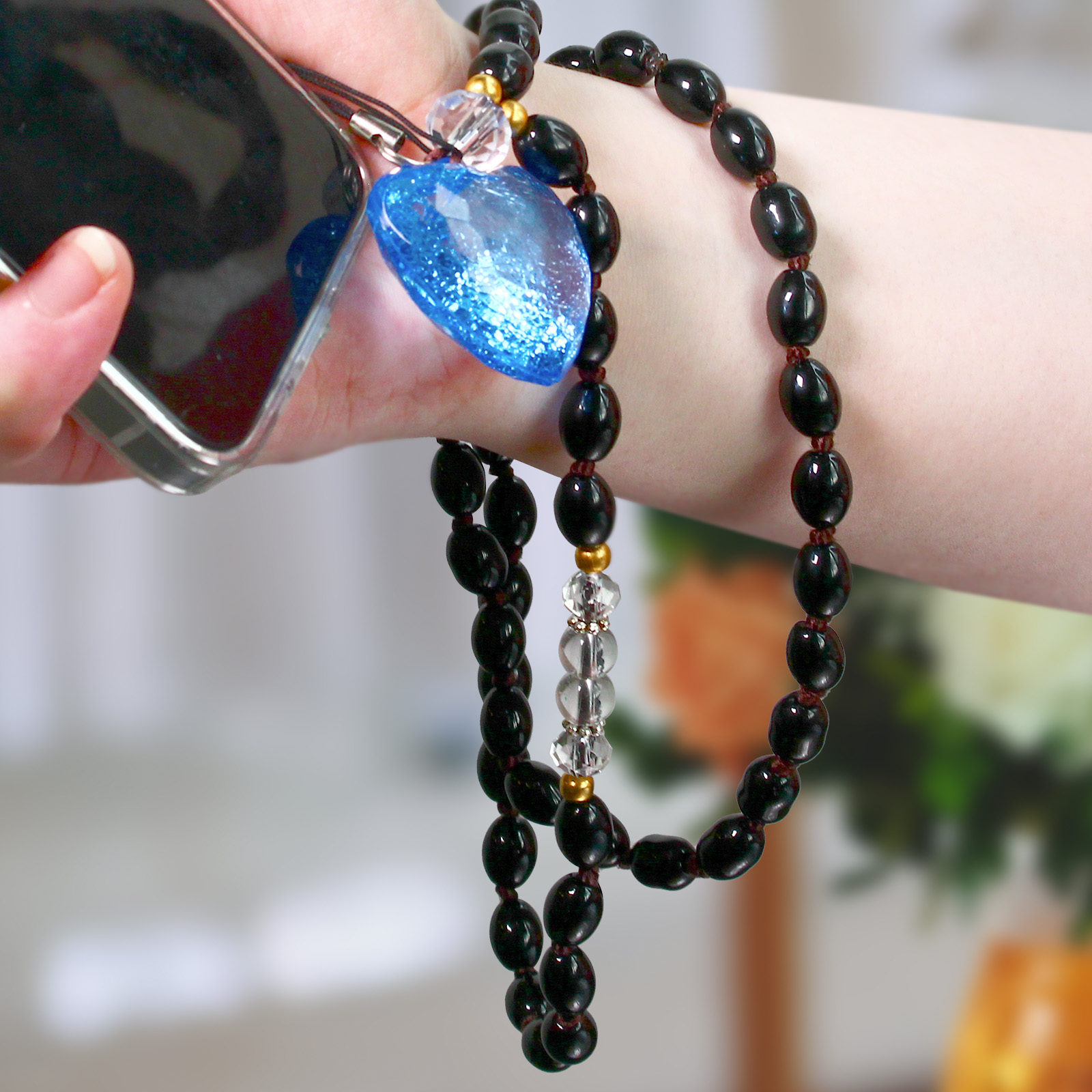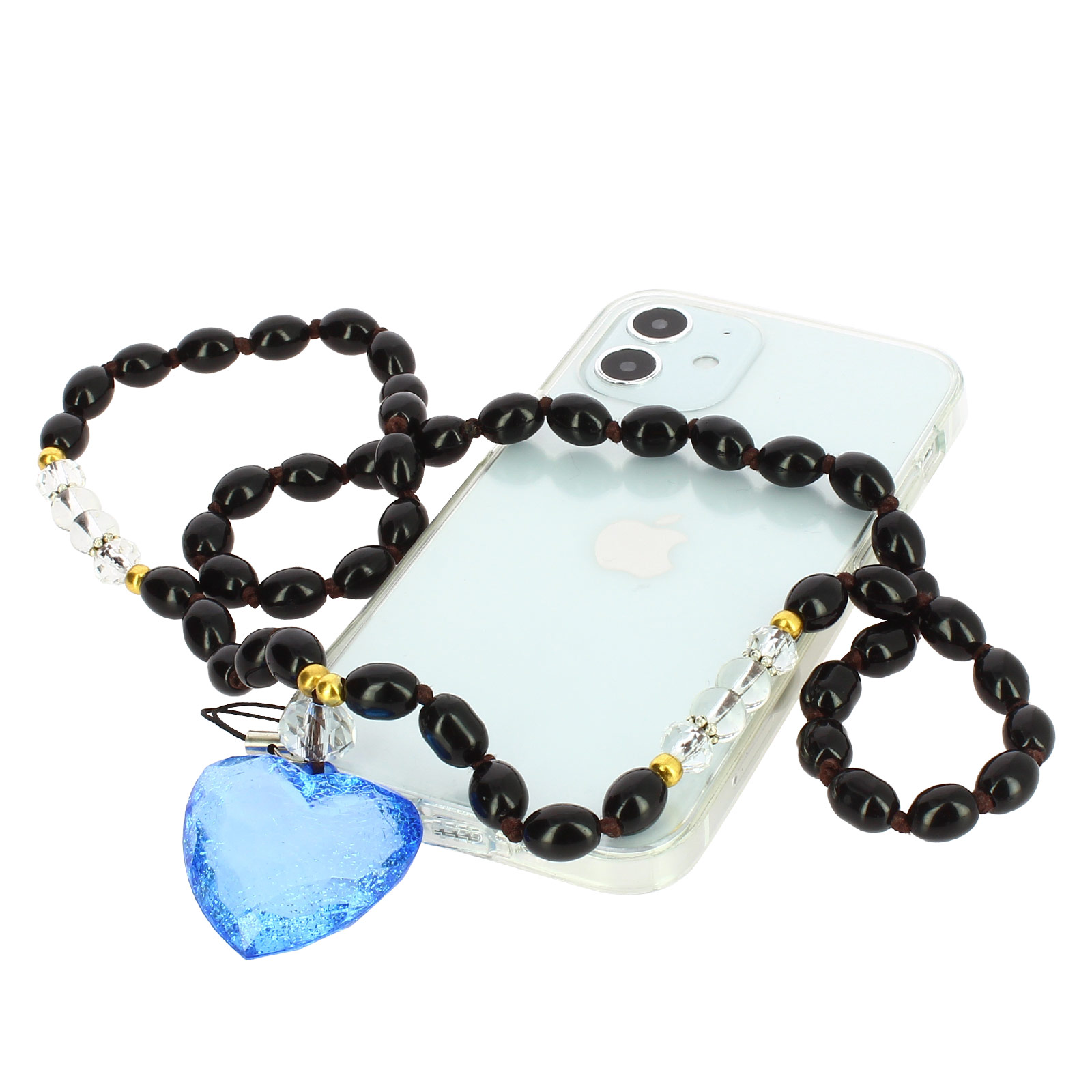 Bijou de Téléphone Bracelet à Perles Ovales et Cœur 80cm Collection Romeo Noir