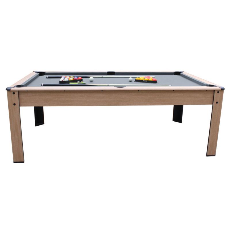 Cette table de billard peut se convertir en table à manger ou en bureau, grâce au plateau (en 2 parties) inclus et peut accueillir confortablement 8 personnes.