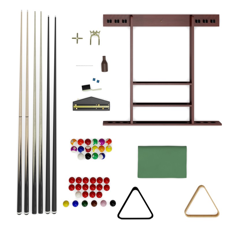 Afin de pouvoir profiter pleinement de votre nouvelle table de billard, et de jouer votre première partie dès qu'elle sera montée, nous vous avons fourni l'ensemble des accessoires indispensables au jeu.