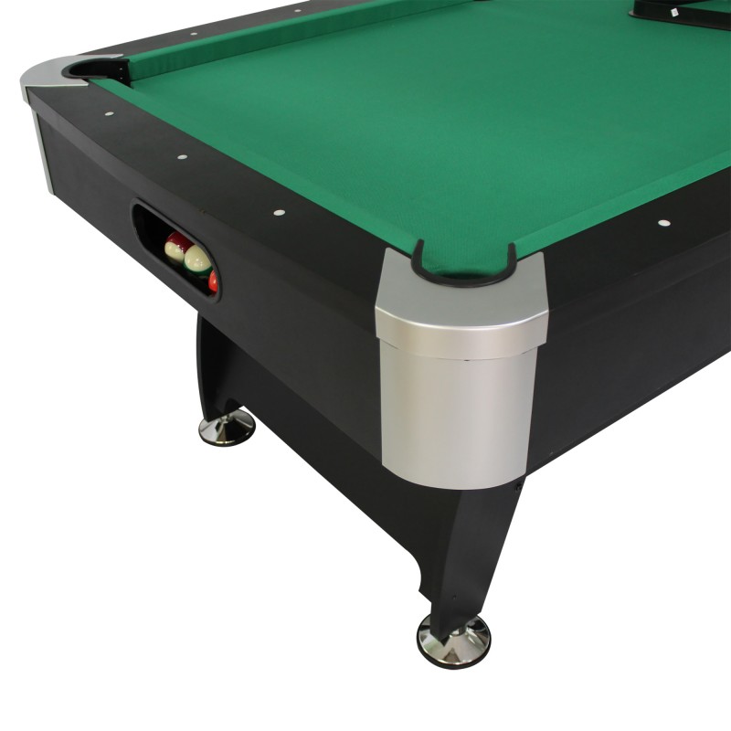 Le tapis de jeu, en tissu spécifique de couleur verte, recouvre la surface de jeu de 193 x 94 cm. Il favorise le roulement des boules grâce à sa planéité parfaite.