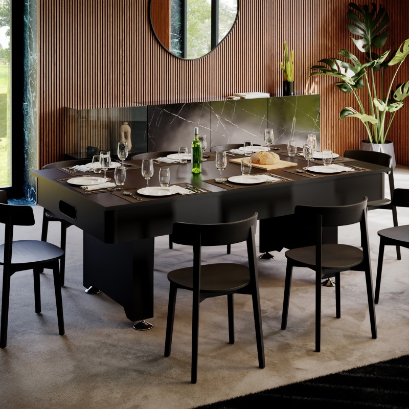 Optimisez l'espace de votre salle à manger, avec notre billard américain doté d'un plateau dinatoire qui s'adapte facilement, afin de transformer votre billard en table à manger. Invitez vos amis autour d'un dîner, et surprenez-les à la fin du repas avec une petite partie de billard improvisée !