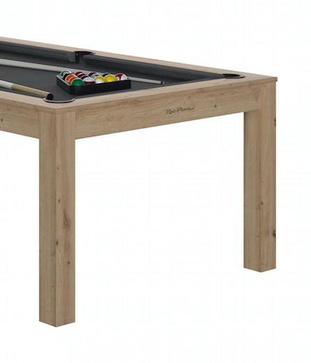 Véritable billard transformable en table. Ardoise monobloc. Réceptacles de billes incorporés. Pieds en bois massif sur vérin de réglage. Montage simple et rapide à 2 personnes en 1 heure. Fabrication française.