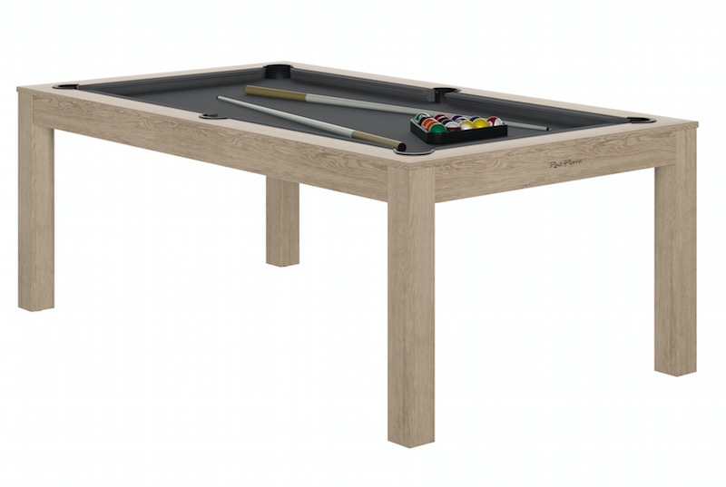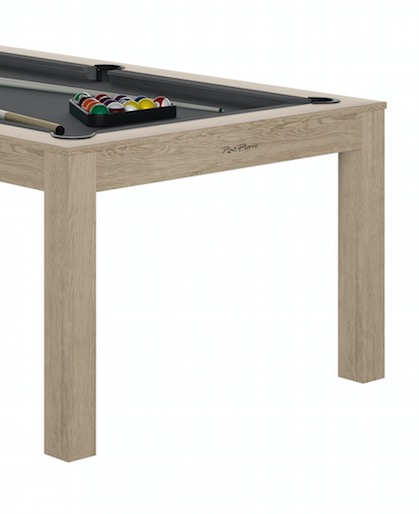 Véritable billard transformable en table. Ardoise monobloc. Réceptacles de billes incorporés. Pieds en bois massif sur vérin de réglage. Montage simple et rapide à 2 personnes en 1 heure. Fabrication française.