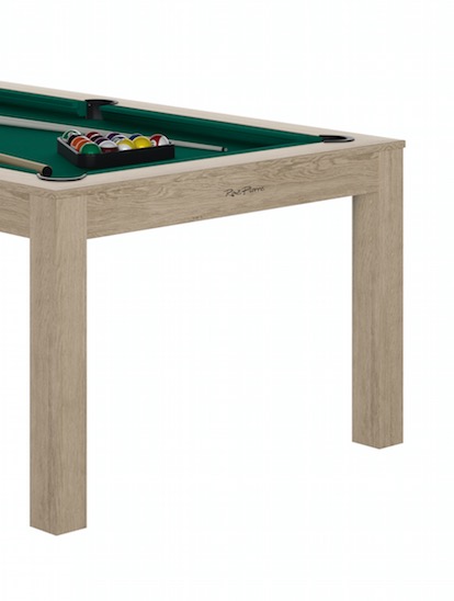 Véritable billard transformable en table. Ardoise monobloc. Réceptacles de billes incorporés. Pieds en bois massif sur vérin de réglage. Montage simple et rapide à 2 personnes en 1 heure. Fabrication française.