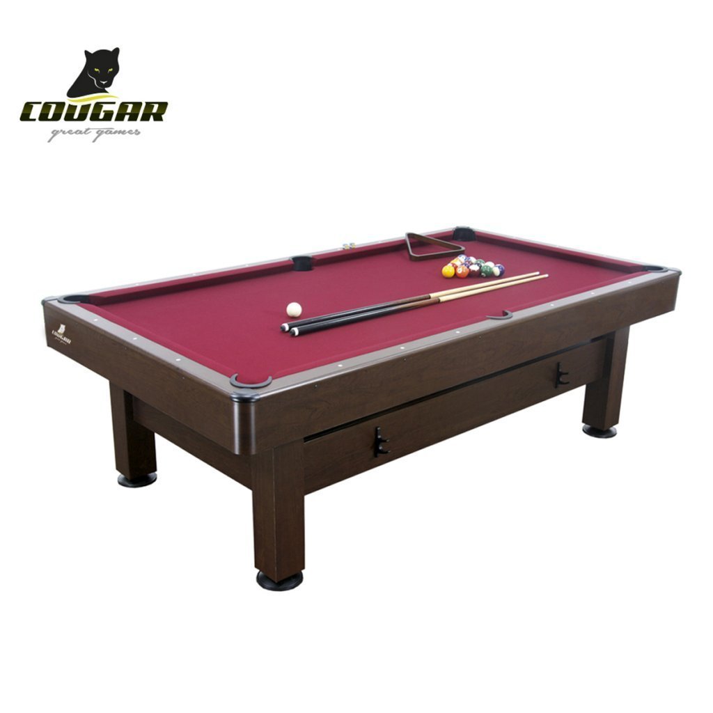Les pieds réglables vous permettent de la mettre parfaitement horizontale à la hauteur désirée. Le châssis lourd et robuste garantit la stabilité de la table. La table est en outre équipée de poches synthétiques, d’équerres de fixation en aluminium noir et d’un rebord interne en caoutchouc de grande qualité pour un retour de bille optimal et exact. La surface de jeu est équipée d’une couche supérieure synthétique dure recouverte d’un tissu rouge (50% laine / 50% polyester). La table est réalisée dans des dimensions européennes : Dimensions de la table (L x l x H): 228 x 128 x 79 cm Dimensions surface de jeu (L x l x H): 200 x 100 x 3,9 cm Inclus: 16 boules de 57mm, un triangle en bois, 2 queues de 145cm et de la craie Poids net : 116 kg Garantie 12 mois