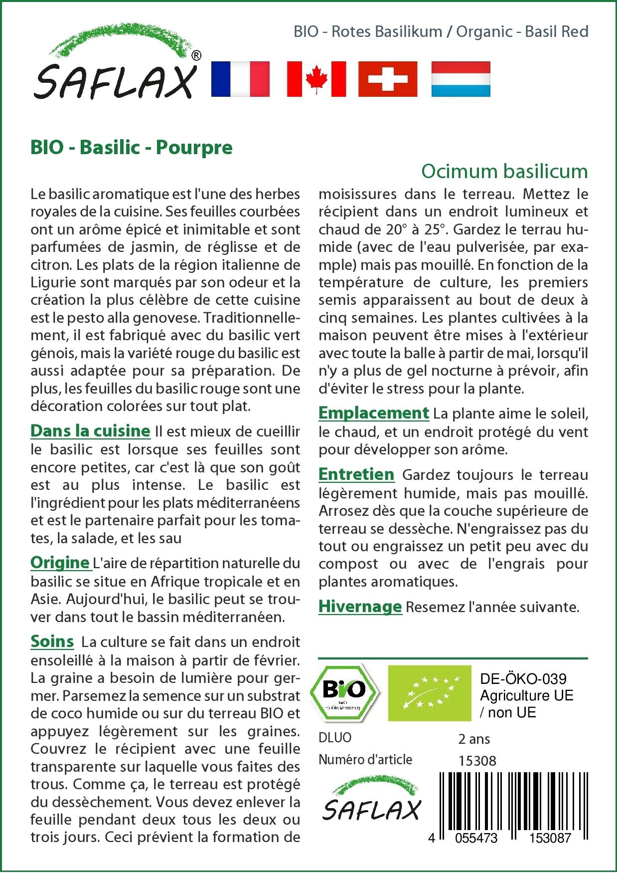 SAFLAX - BIO - Basilic - Pourpre - 400 graines - Ocimum basilicum