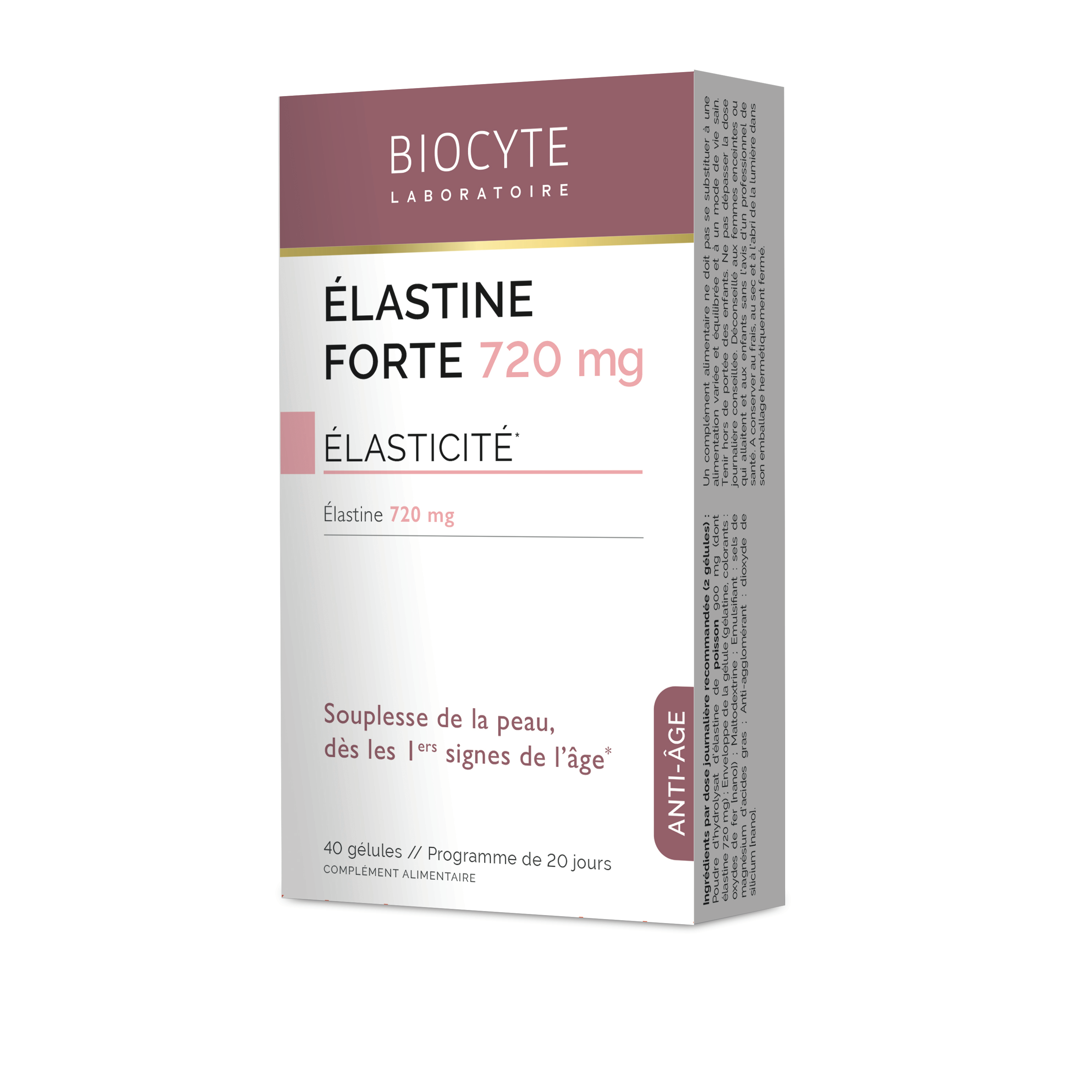 | Libellé | Biocyte Élastine Forte 720mg Élasticité 40 Gélules |