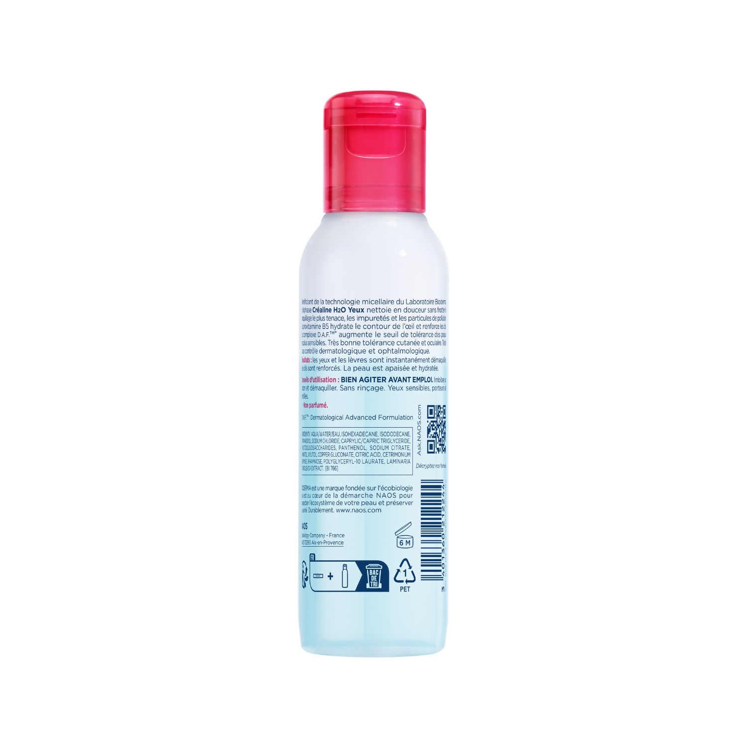 Créaline H2O yeux nettoie en douceur sans frotter le maquillage le plus tenace, les impuretés et les particules de pollution. La provitamine B5 hydrate le contour de l’oeil et renforce les cils. Le complexe breveté D.A.F augmente le seuil de tolérance des peaux les plus sensibles. Très bonne tolérance cutanée et oculaire.