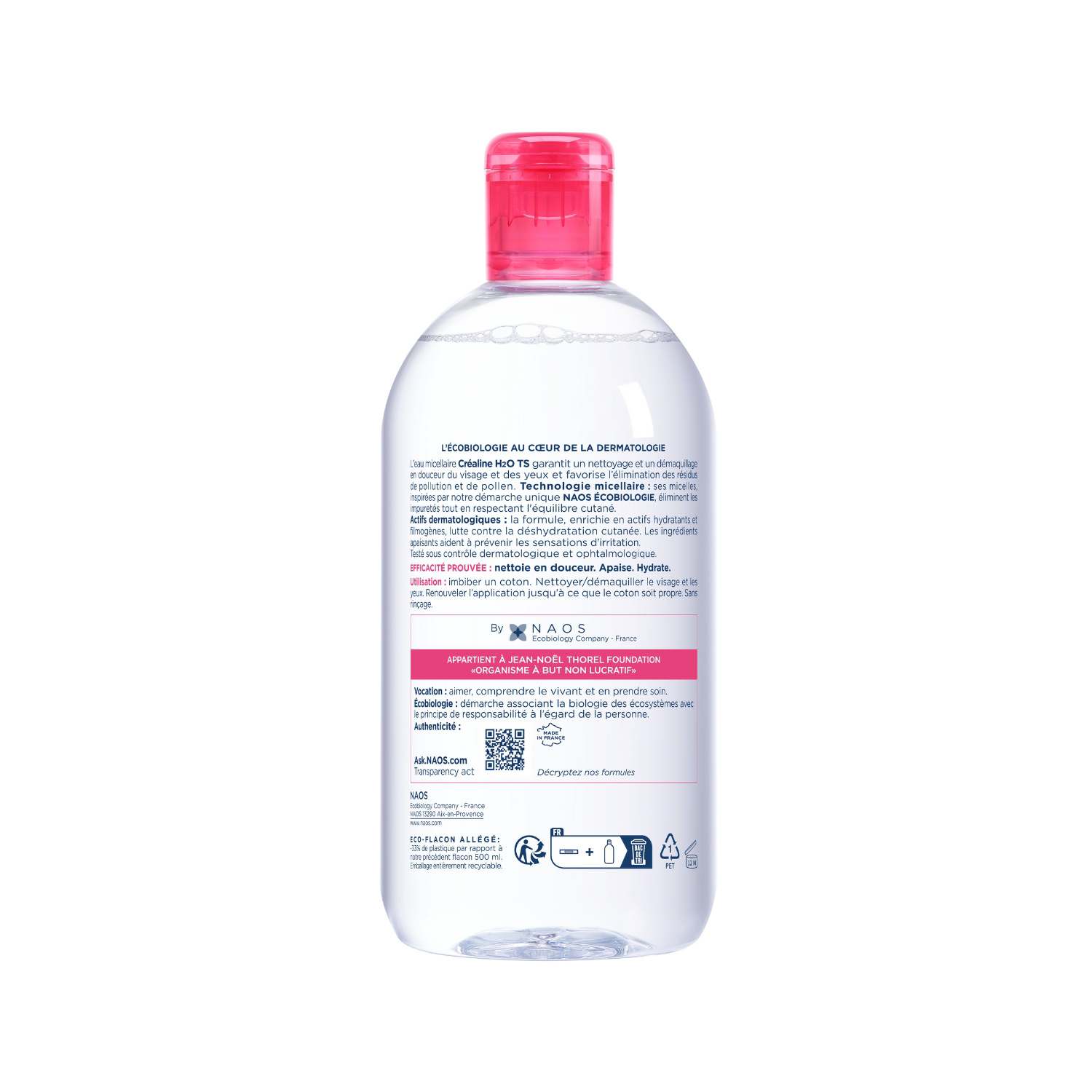 Créaline H2O TS garantit un nettoyage et un démaquillage en douceur du visage et des yeux et favorise l’élimination des résidus de pollution et de pollen. Inspirées de la structure biologique des lipides de la peau, ses micelles éliminent les impuretés tout en respectant l’équilibre cutané. Enrichie en actifs hydratants et filmogènes, Créaline H2O TS lutte contre la déshydratation cutanée. Les actifs dermatologiques apaisants aident à prévenir les sensations d’irritation. Le complexe breveté D.A.F.™* augmente le seuil de tolérance des peaux les plus sensibles. Haute tolérance cutanée et oculaire. Testé sous contrôle dermatologique et ophtalmologique. Résultats : la peau est nettoyée, démaquillée, sans film résiduel. Elle est apaisée et hydratée.