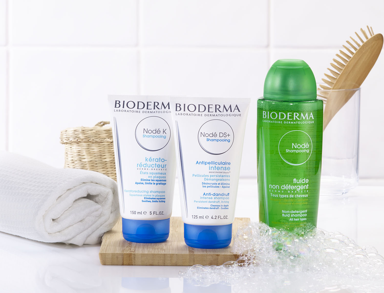 Période d’attaque (3 semaines) : 3 shampooings par semaine Entretien : 1 à 2 shampooings par semaine Faites mousser Nodé DS+ de Bioderma en massant délicatement le cuir chevelu. Rincez et renouvelez l’opération. Laissez agir 5 minutes, puis rincez abondamment. Evitez le contact avec les yeux.