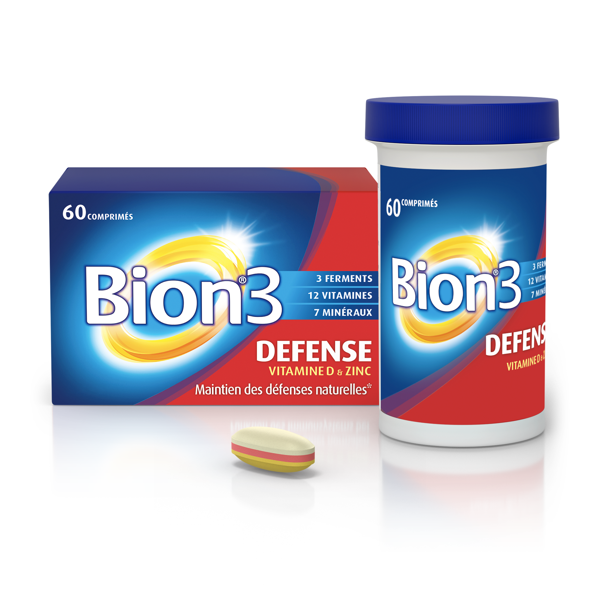 Le rythme de vie moderne peut mettre l'organisme à rude épreuve. Bion®3 Défense est destiné aux adultes qui souhaitent maintenir leurs défenses immunitaires et réduire leur fatigue, notamment en période de baisse de forme (et aux changements de saison). Il contient une asosciations uniques de ferments microbiotiques, de vitamine D et de zinc qui contribuent au fonctionnement normal du système immunitaire et du fer qui aide à réduire la fatigue. Complément alimentaire - utiliser dans le cadre d'une alimentation variée, équilibrée et d'un mode de vie sain.