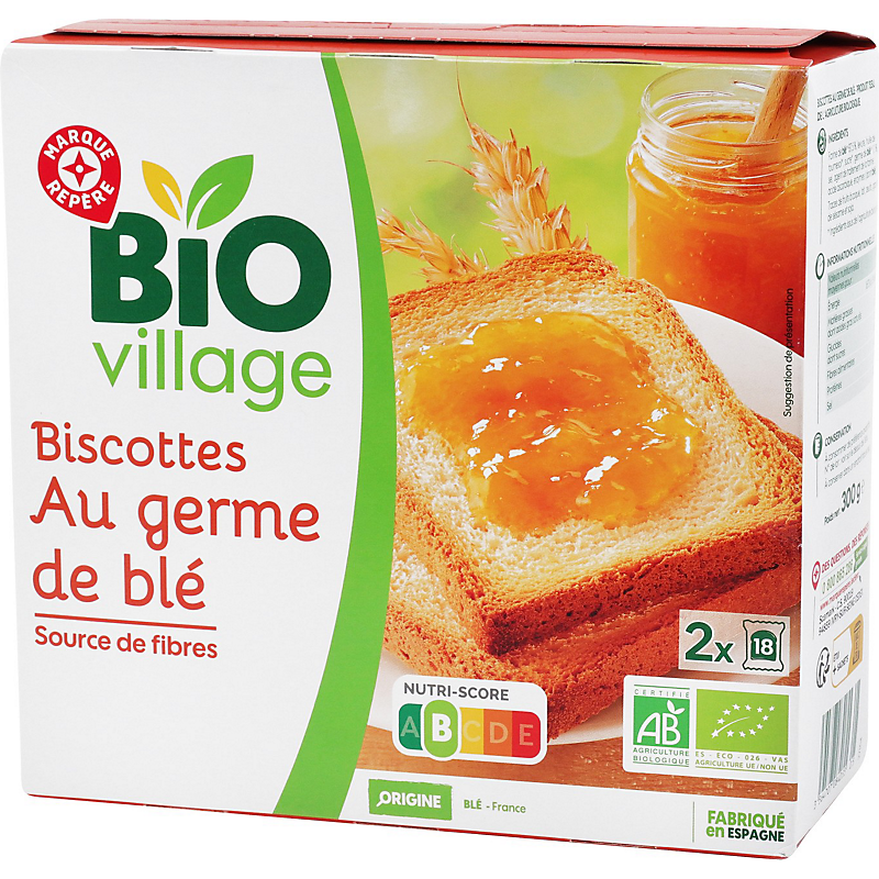 Biscottes au germe de blé - Produit issu de l'agriculture biologique BIO VILLAGE